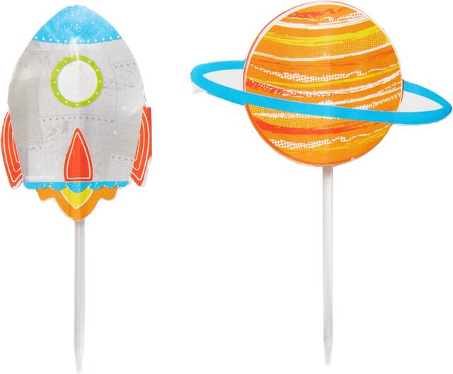 Party picks come in rocket ship and Saturn designs