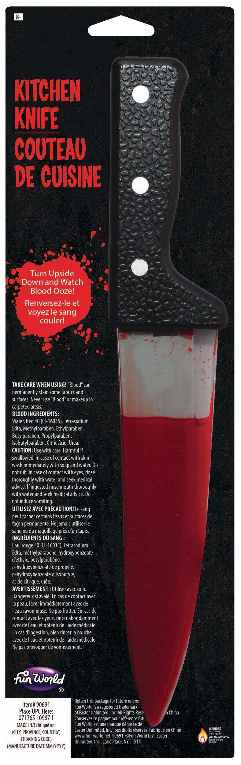 Add a chilling touch to your Halloween costume with this 13-inch Bloody Knife. The blood-splattered blade and black handle create a realistic and terrifying effect, perfect for any spooky event or haunted house.