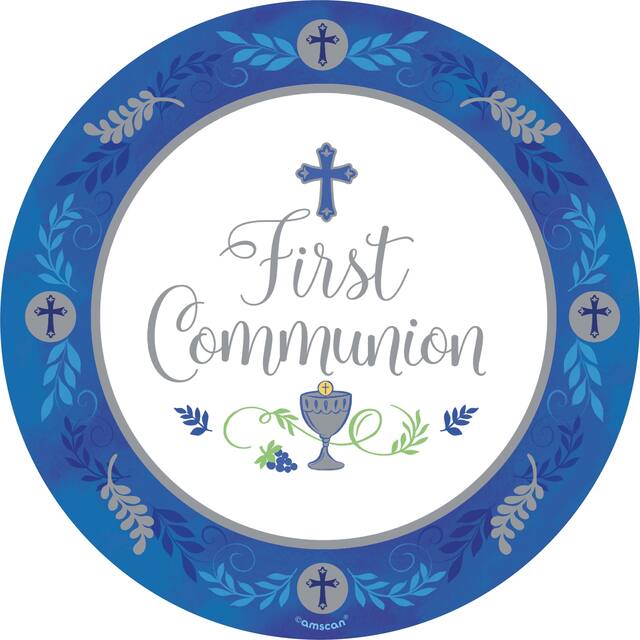 You may be interested in these similar products shown below.Make your child's special day memorable with Blue and Silver First Communion Cutouts that feature shapes of chalices, crosses and doves