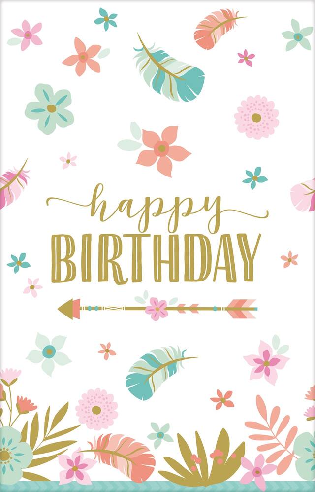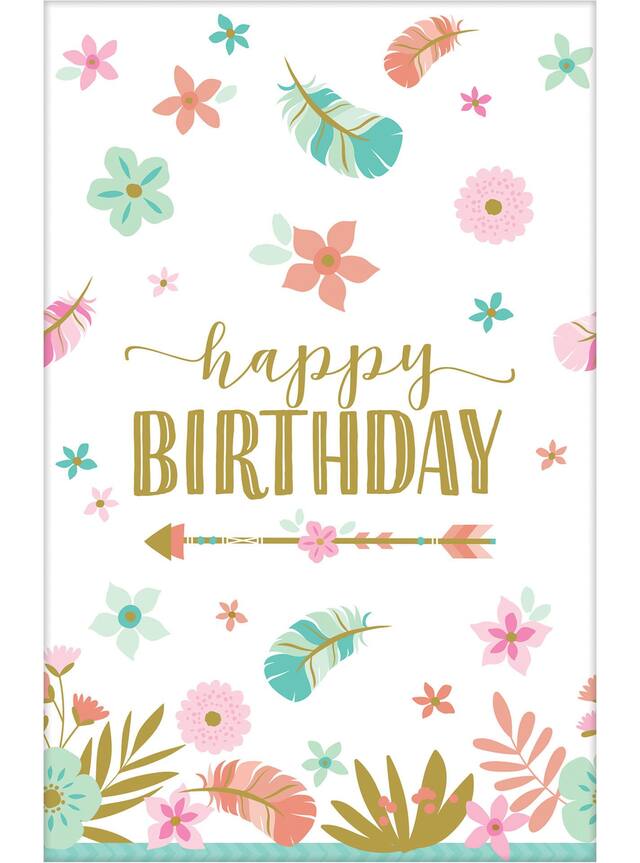 You may be interested in these similar products shown below.Boho Girl Paper Table Cover features a boho-chic floral and feather print surrounding "Happy Birthday" headlines