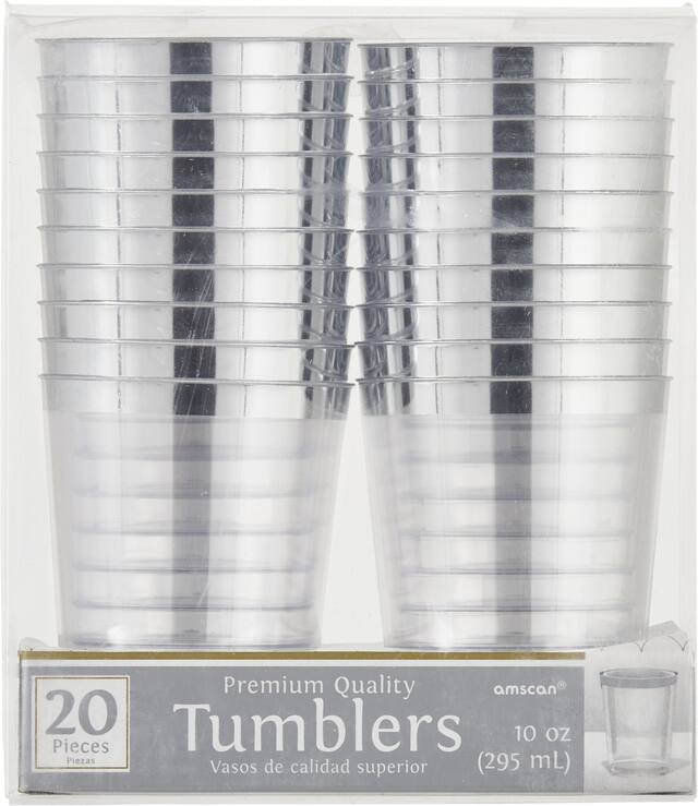 These tumblers feature a metallic silver rim that adds a sophisticated touch. The thick, clear plastic will keep your party guests' drinks cold and their hands comfortable while they sip. Perfect for serving juice boxes at the kids' birthday party or cocktails at a holiday gathering, these tumblers will help make any occasion festive. The durable construction means they'll withstand spills and last through many more celebrations to come.