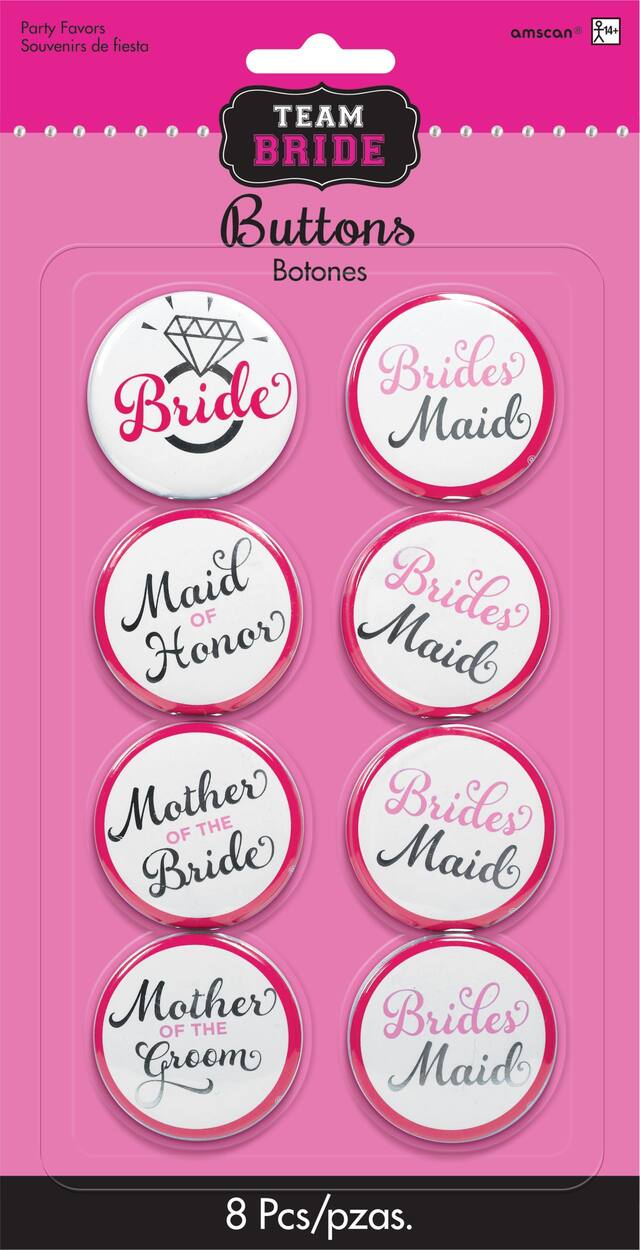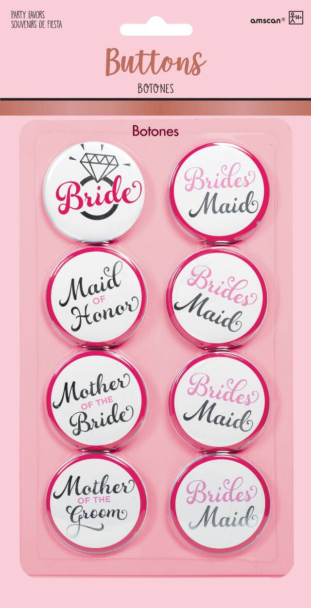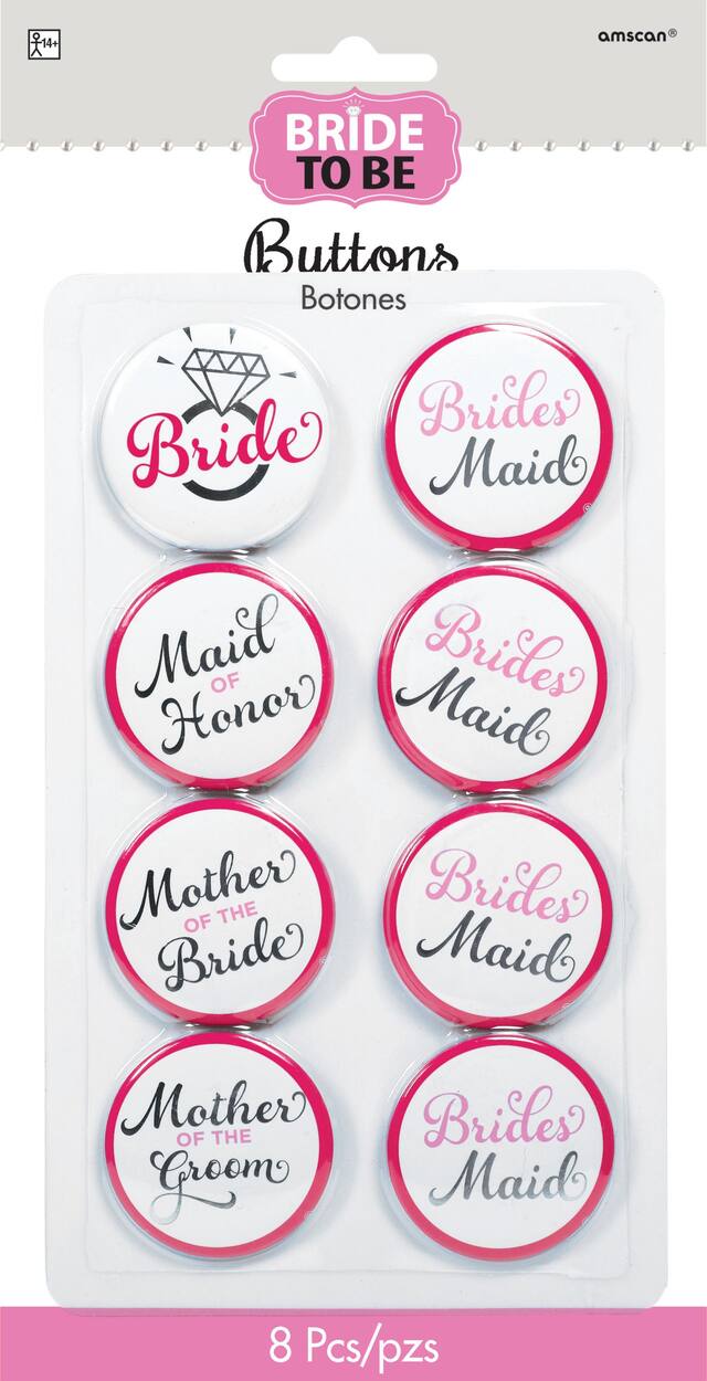 You may be interested in these similar products shown below.Bridal Classy Bride Party Buttons include a button for the bride, maid of honor, mothers of the bride and groom, and four bridesmaids