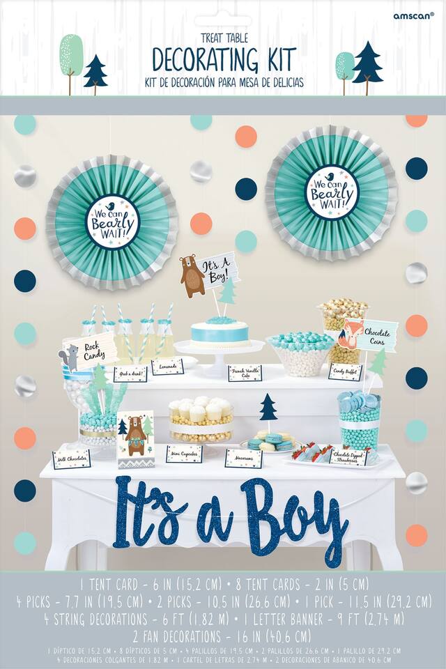 You may be interested in these similar products shown below.Can Bearly Wait Baby Shower Treat Table Decorating Kit includes tent cards, picks, string decorations, paper fans, and a letter banner that reads "It's A Boy"