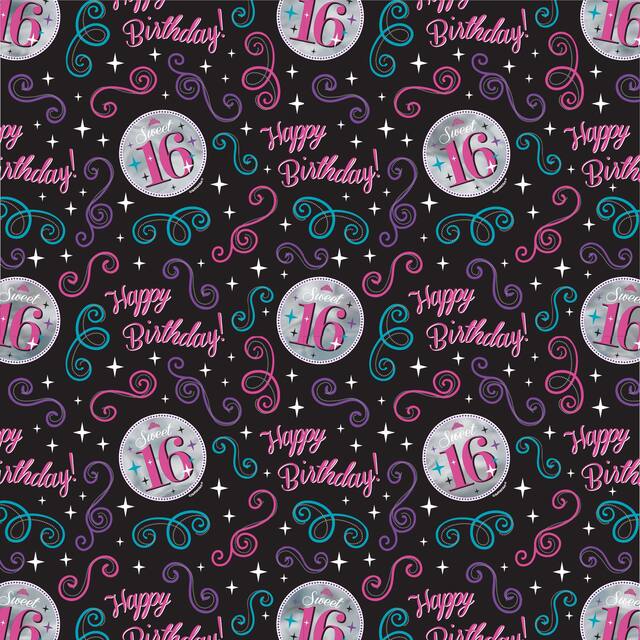 You may be interested in these similar products shown below.Celebrate Sweet 16 Gift Wrap features paper decorated with "Happy Birthday" and "Sweet 16" motifs in perfectly pink text