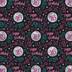 Shiny black background is also adorned with pink, blue, and purple swirls