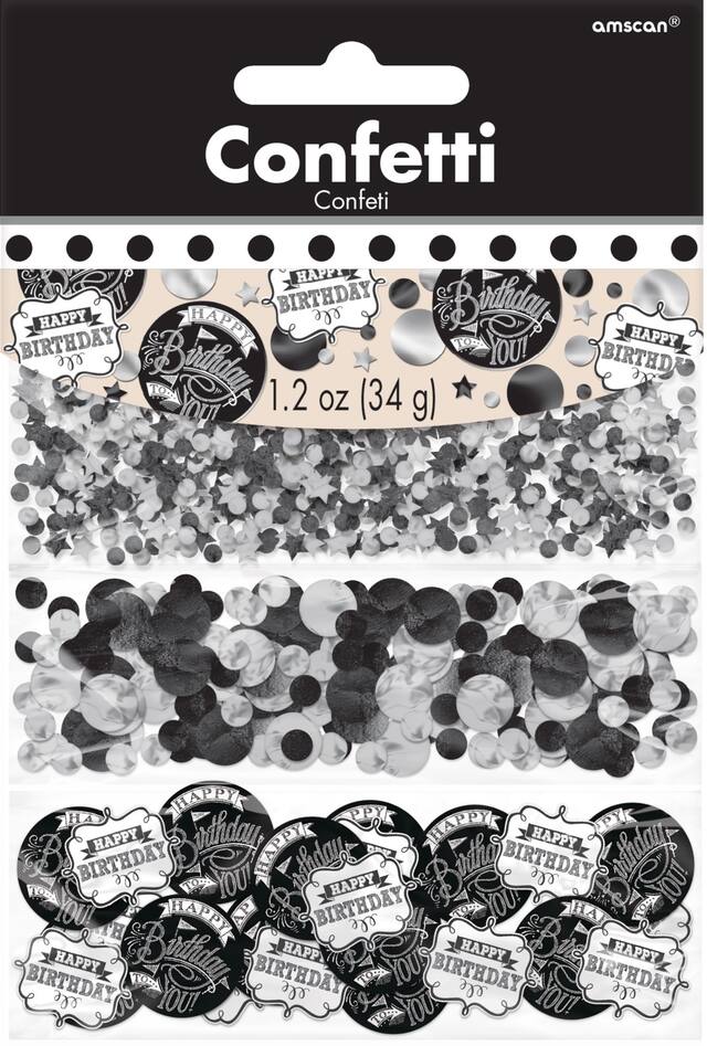 You may be interested in these similar products shown below.Chalkboard Dots Birthday Confetti contains foil stars, foil circles, and cardstock circles that read "Happy Birthday"