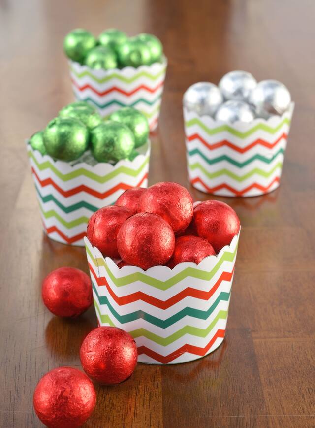Paper bowls have a chic scalloped top border and a festive chevron pattern that is sure to draw attention to your delectable treats
