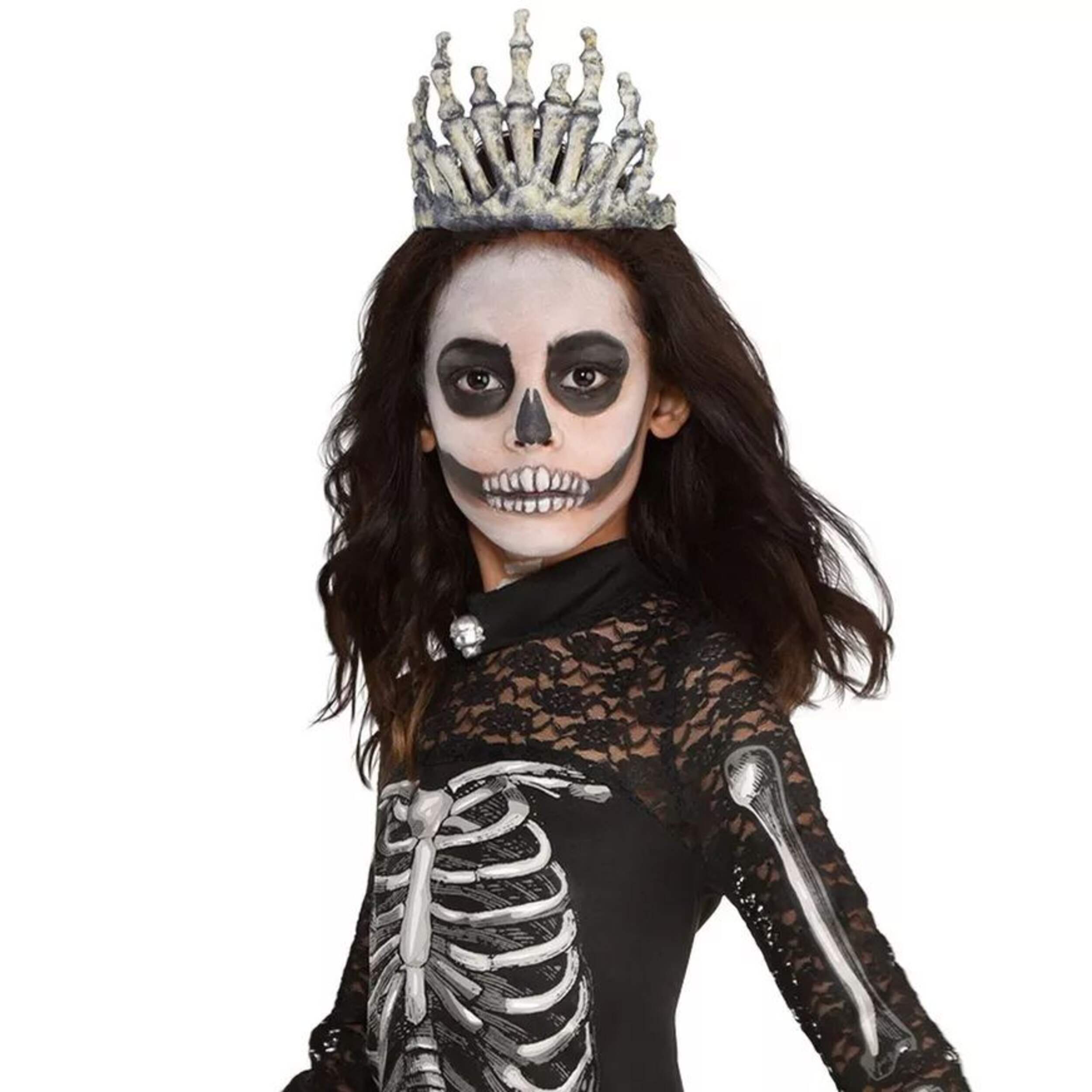 Transform your child into a Gothic Skeleton Princess this Halloween with this enchanting black and white dress. Complete with a matching bone crown, this skeleton costume is perfect for ruling over a spooky kingdom. Available in assorted costume sizes, it ensures a perfect fit for a variety of age groups.