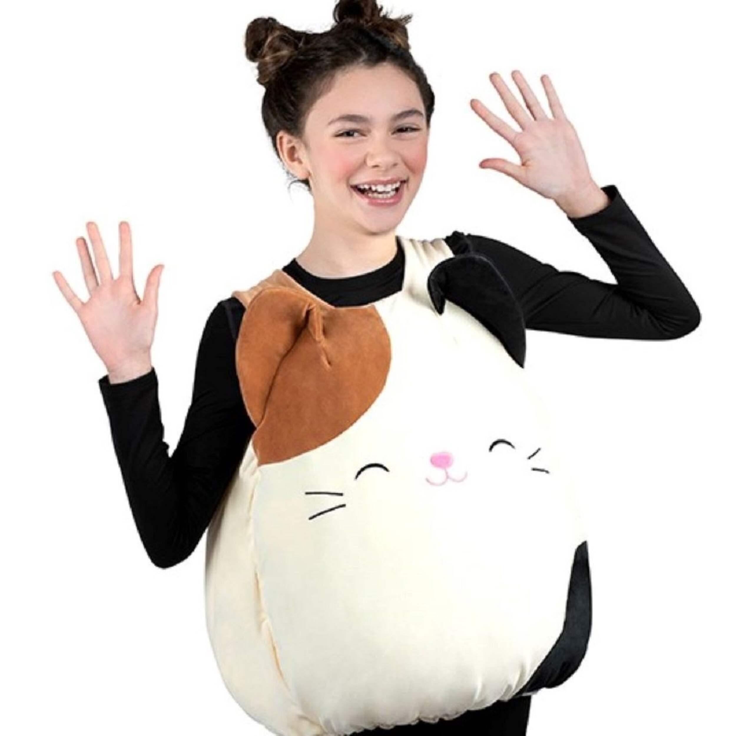 You may be interested in these similar products shown below.Transform your child into their favourite Squishmallow™ character with the Cam The Cat Plush Stuffed Vest Costume. This delightful vest features a charming calico design complete with a tail and cat ears, making it the perfect outfit for trick-or-treating or costume parties. Designed for children aged 10-12, this costume ensures a fun and memorable experience.