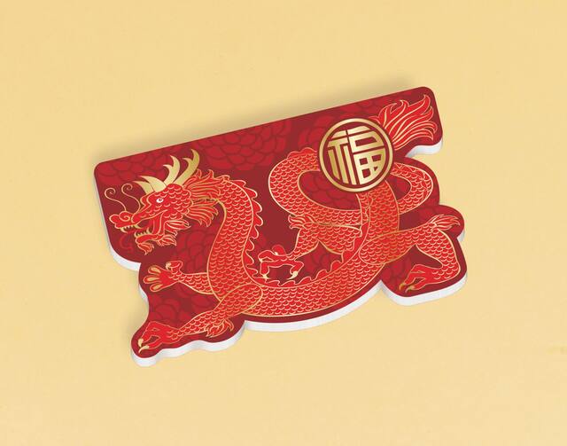 Red and gold notebooks feature an intricate dragon and the Chinese character for "Good Fortune" on the cover, plus lined pages inside for young artists