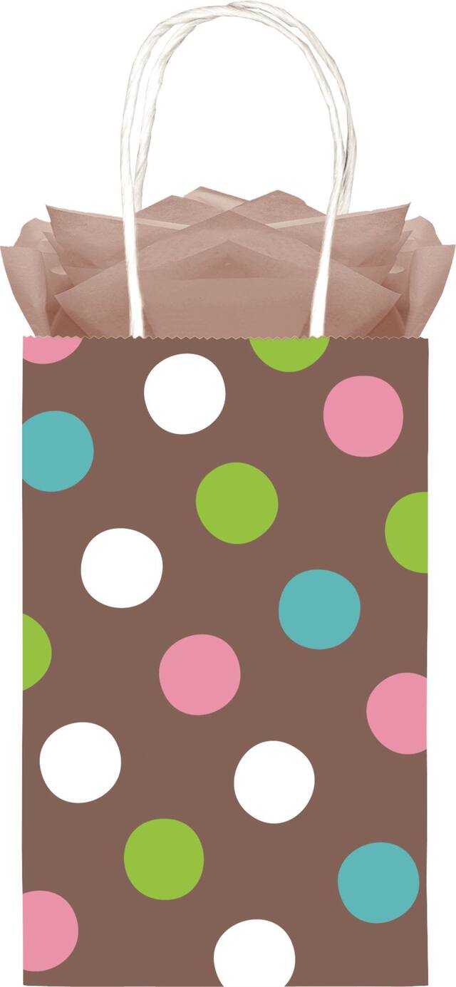 You may be interested in these similar products shown below.Chocolate Dot Print Kraft Bag features polka dots and twisted paper handles