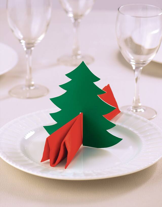 • Christmas Tree Place Card Napkin Holders adds a decorative touch to your holiday tablescape
