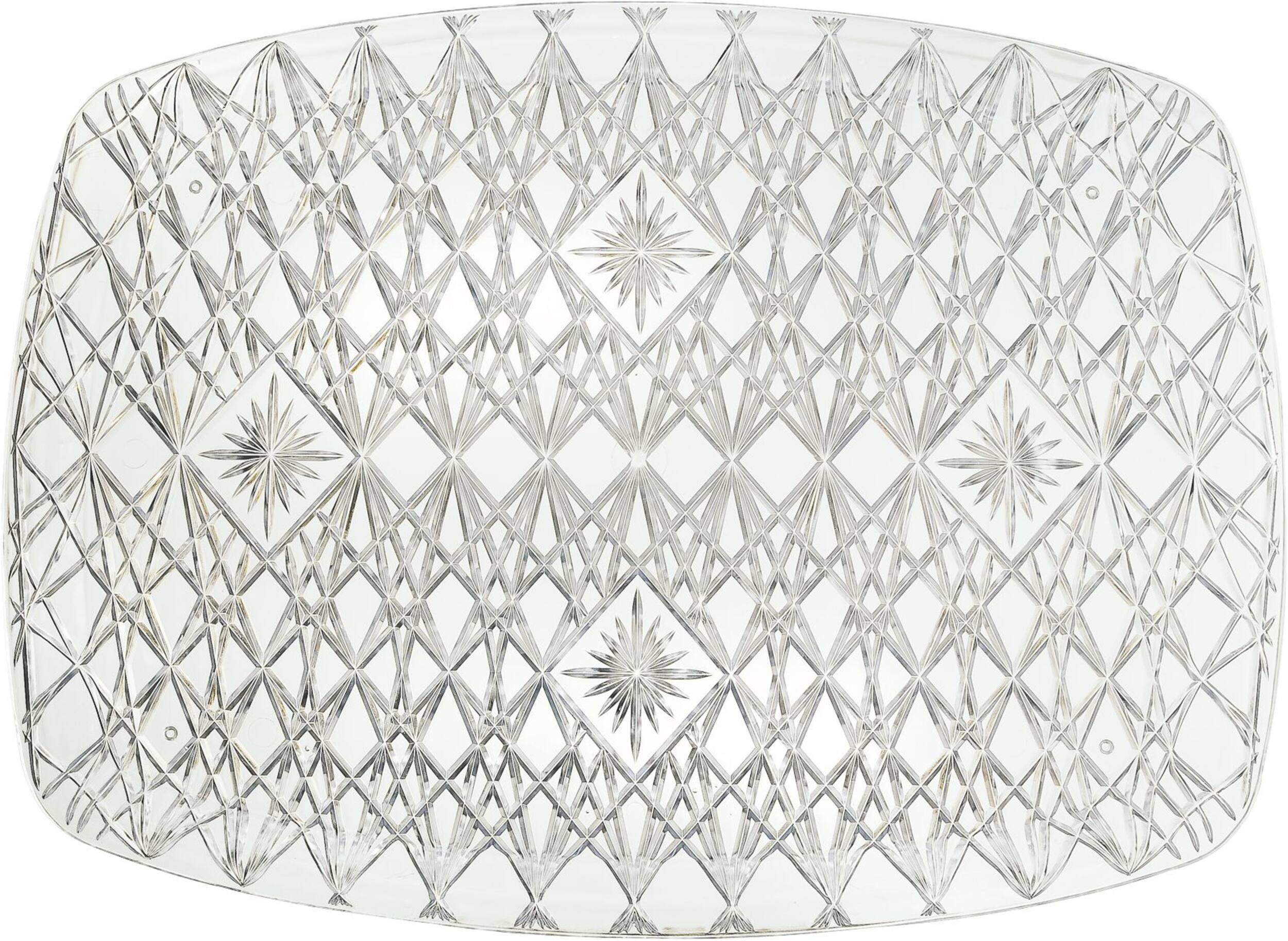 You may be interested in these similar products shown below.With the look of cut crystal and the practicality of plastic, this CLEAR Plastic Crystal Cut Rectangular Platter instantly elevates your party status