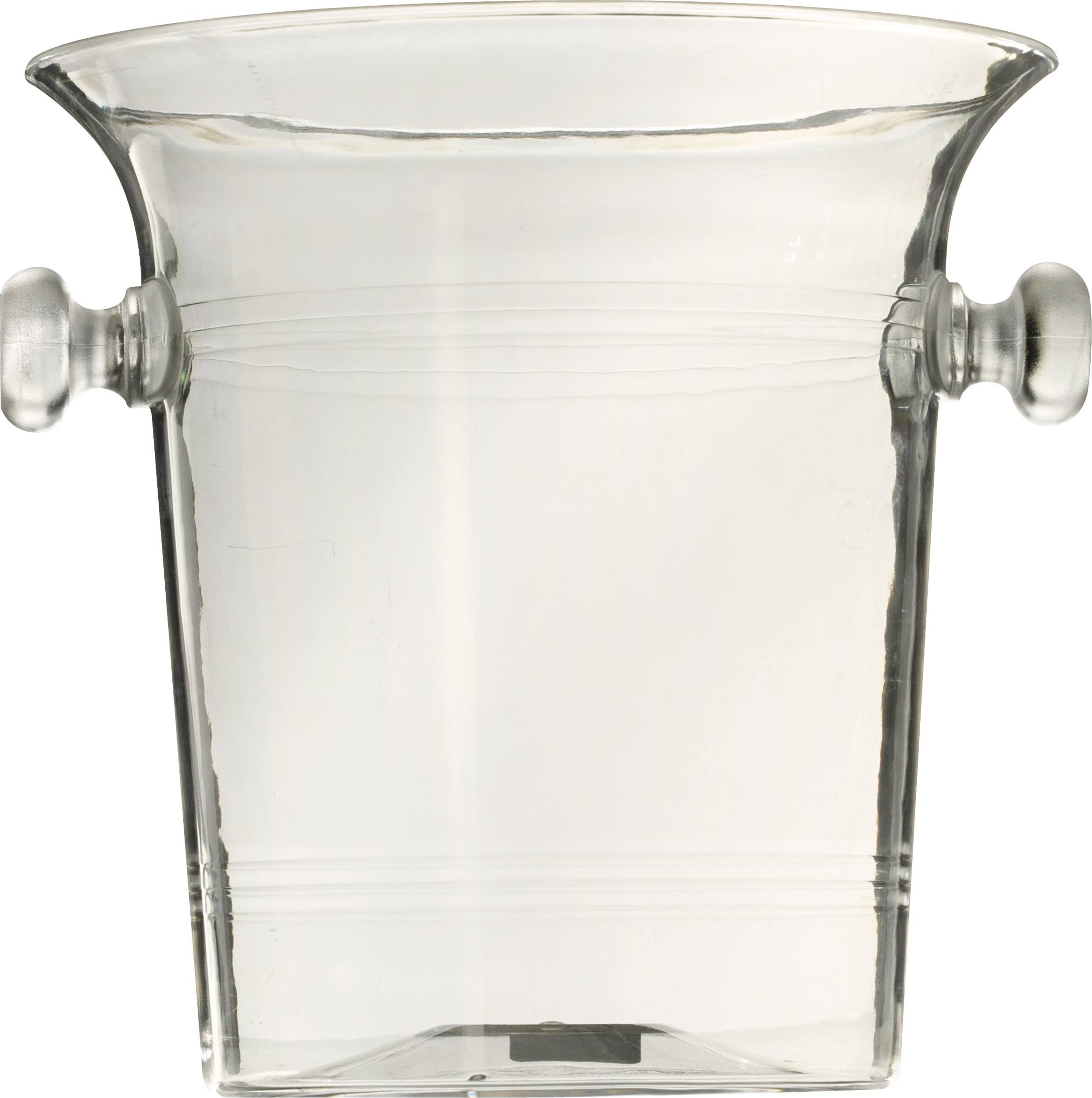 You may be interested in these similar products shown below.Clear Plastic Ice Bucket features a flared lip and 2 knob handles