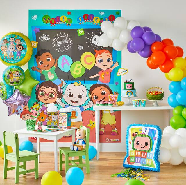 Create memorable moments at your child's birthday party with the Cocomelon Plastic Scene Setter Background Decoration. Featuring beloved characters like Cody, Nico, Bella, JJ, and Nina, this vibrant birthday backdrop sets the perfect stage for fun and lively photos.