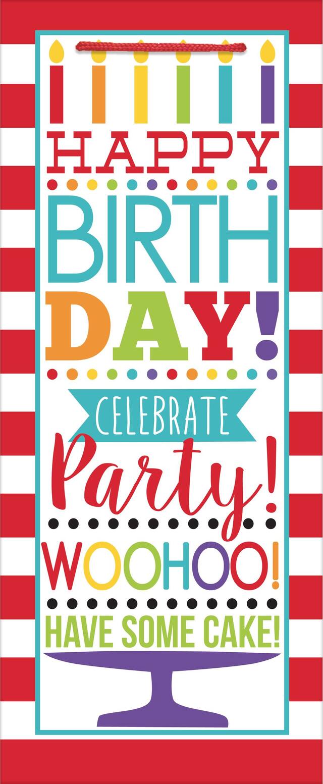 You may be interested in these similar products shown below.Colourful Birthday Bottle Bag features various colourful birthday phrases including "Party! ", "Have Some Cake! " and more