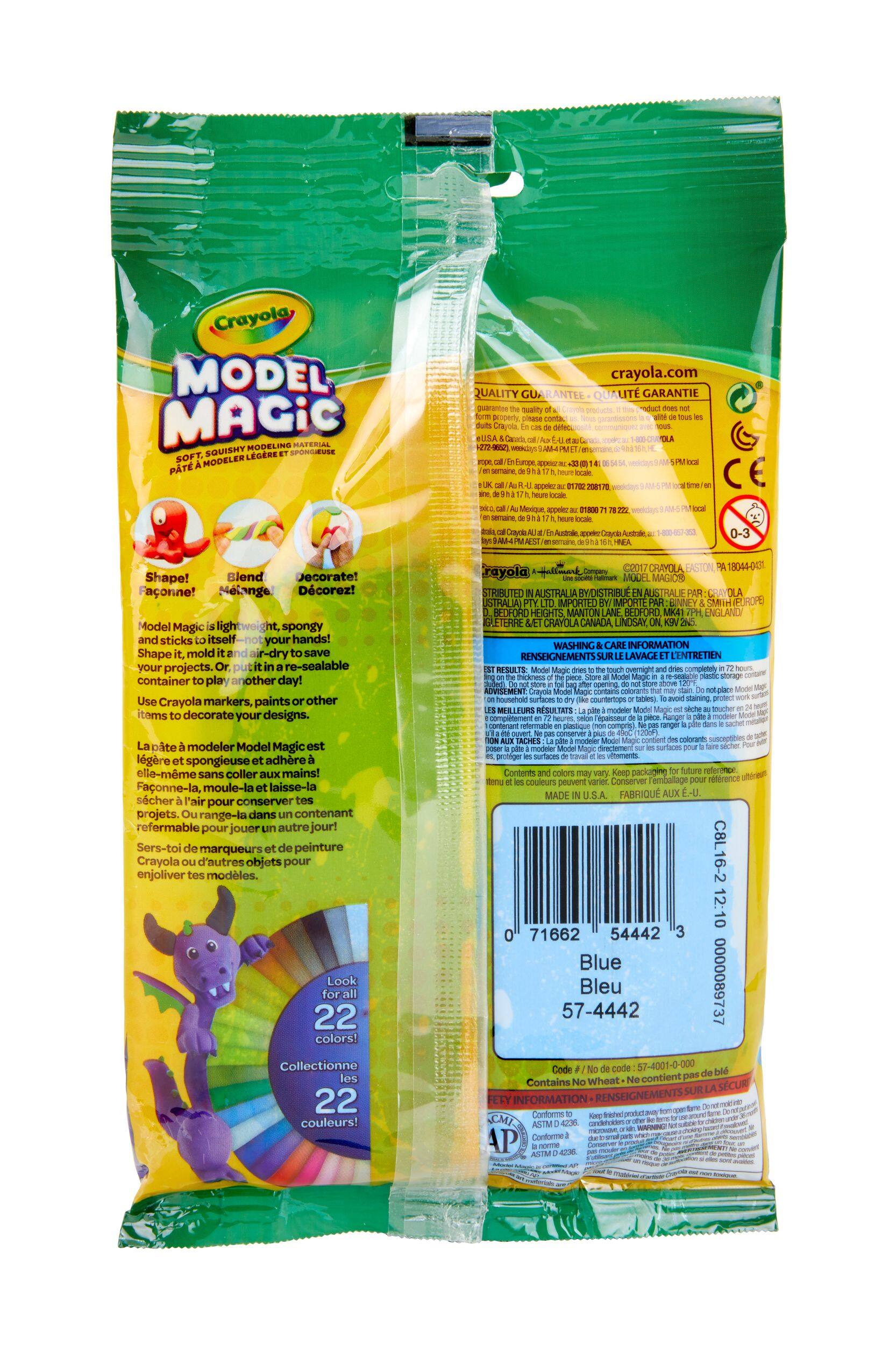 Crayola Model Magic lets imaginations run wild. This soft and pliable modeling material rolls, stretches and flattens to form an endless variety of shapes requiring no firing or baking to harden. It won't crumble during use when dry or leave a mess, making clean up effortless.