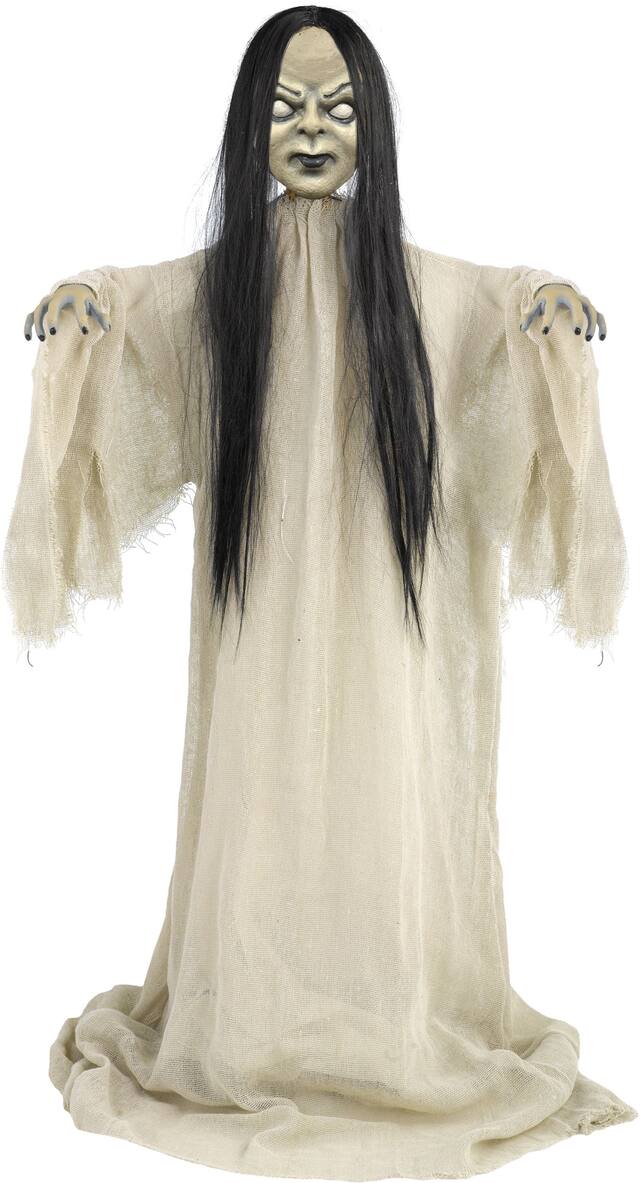 The free-standing decoration is designed to look like a possessed girl in a white cloak with her hands reaching toward onlookers