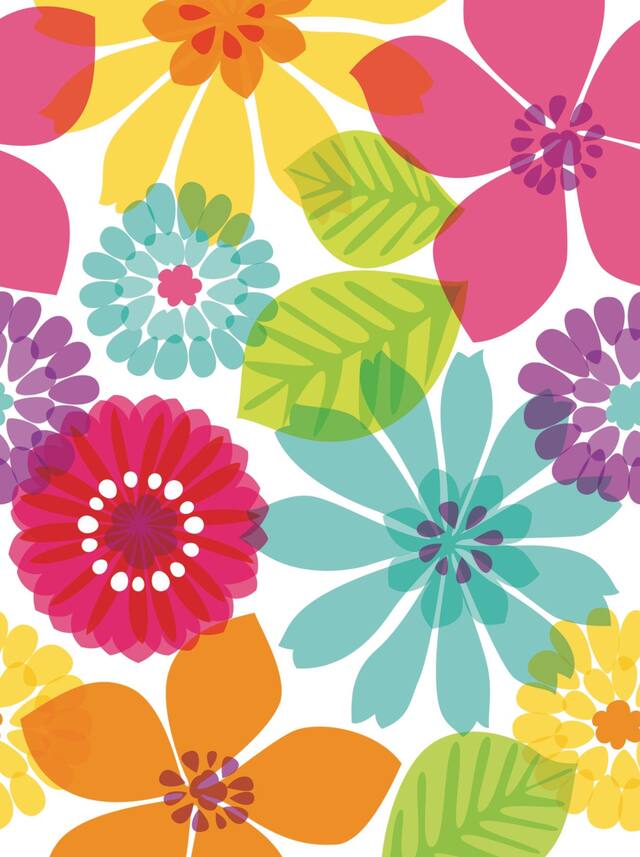 • Oversized flowers in brilliant summery hues bloom against a white background to add a splash of colour to your party