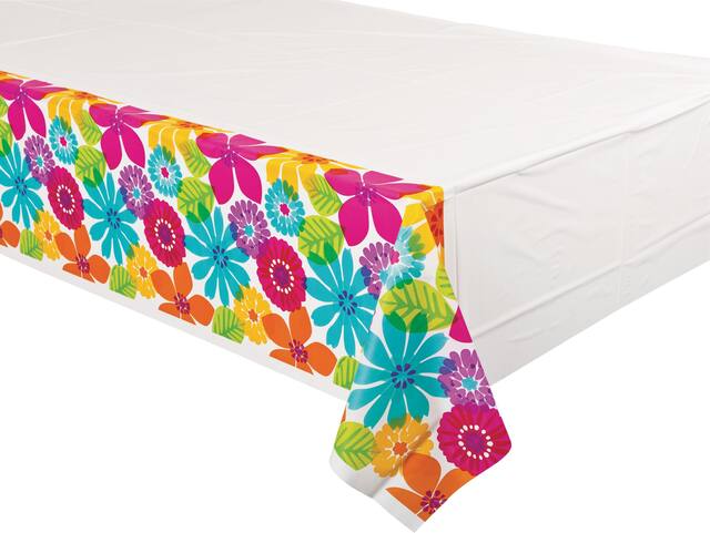 • Complete your island-themed table decor with a colourful floral plastic table cover!