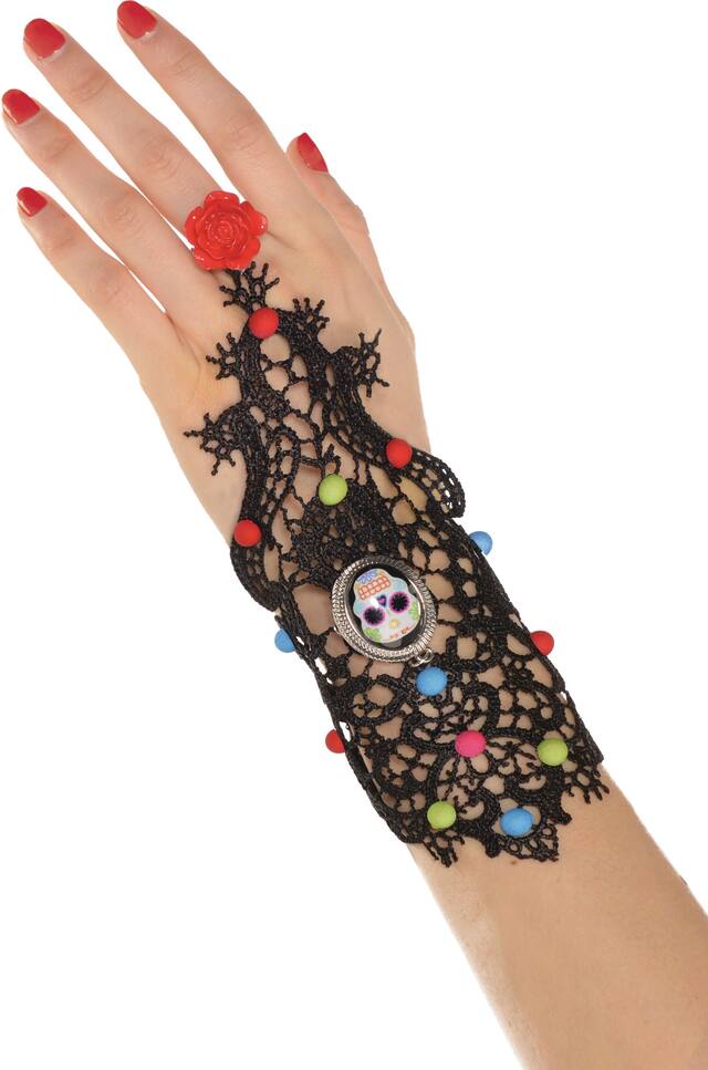 You may be interested in these similar products shown below.Day of the Dead Ring Bracelet lets you show up to the Dia de los Muertos celebration with the most festive accessory