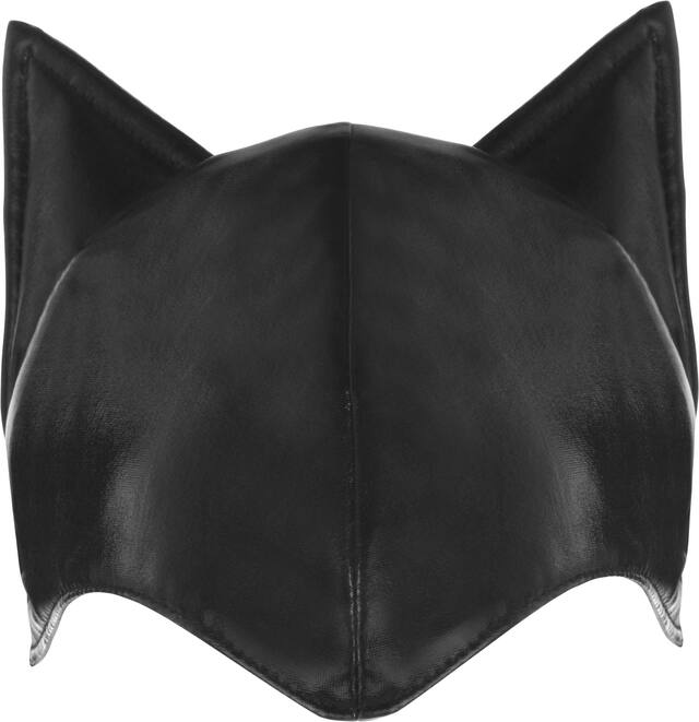 Black faux leather hat covers the top of your head and features two cat ear attachments