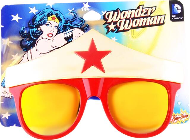 Unleash your inner superhero with the DC Wonder Woman Wearable Sunglasses. Perfect for a birthday party or Halloween, these superhero sunglasses feature a striking design inspired by Wonder Woman's iconic look. Stand out in any crowd with these fun and stylish party sunglasses.