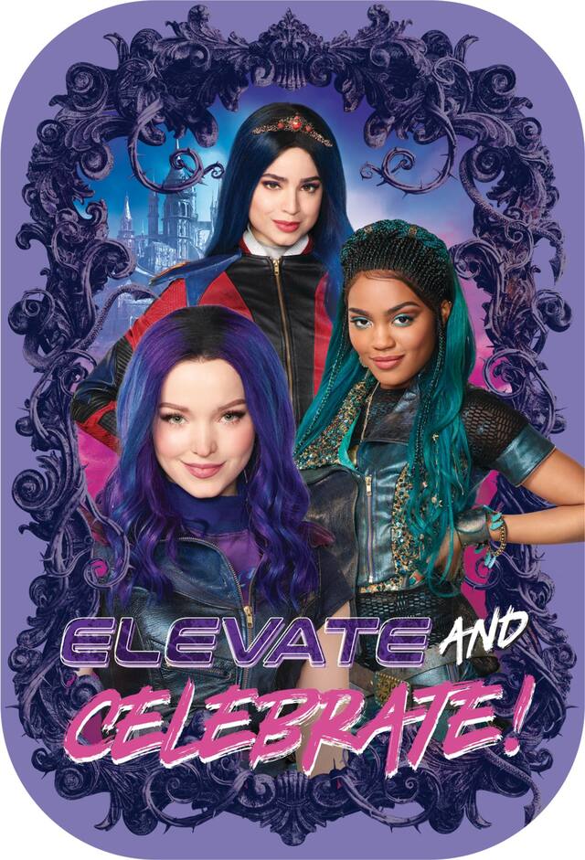 You may be interested in these similar products shown below.Descendants 3 Invitations feature Evie, Mal and Uma against a purple background