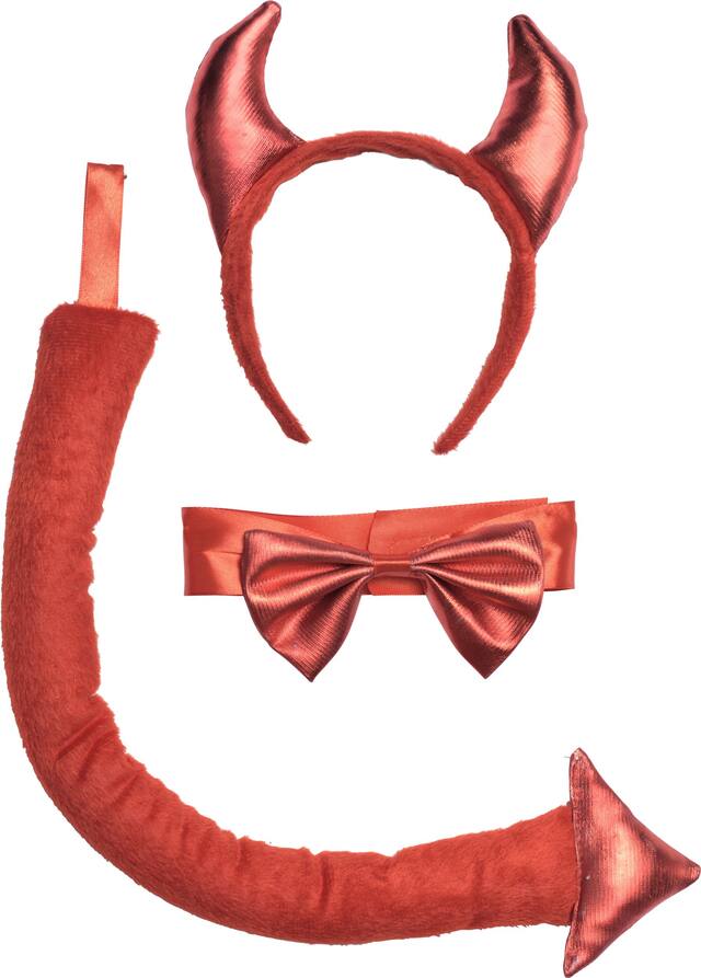 You may be interested in these similar products shown below.Get party-ready and show off your devil side with the Devil Accessory Halloween Costume Kit, Adult, One Size, 3-pc. The devil costume kit features the accessories you need to jump-start your devilish look. The costume accessory kit includes a horns headband, red bow tie, and plush devil tail. The costume is ideal for adults (18+) and includes a one-year exchange warranty.