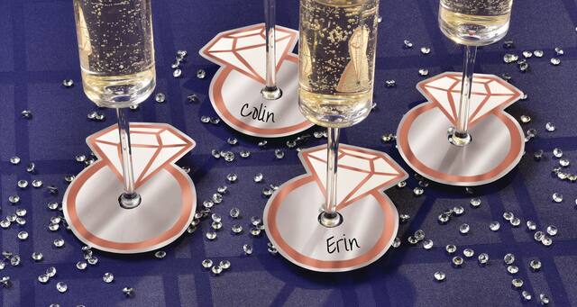 Place them around the bases of champagne and wine glasses at bachelorette parties, bridal showers, and engagement parties