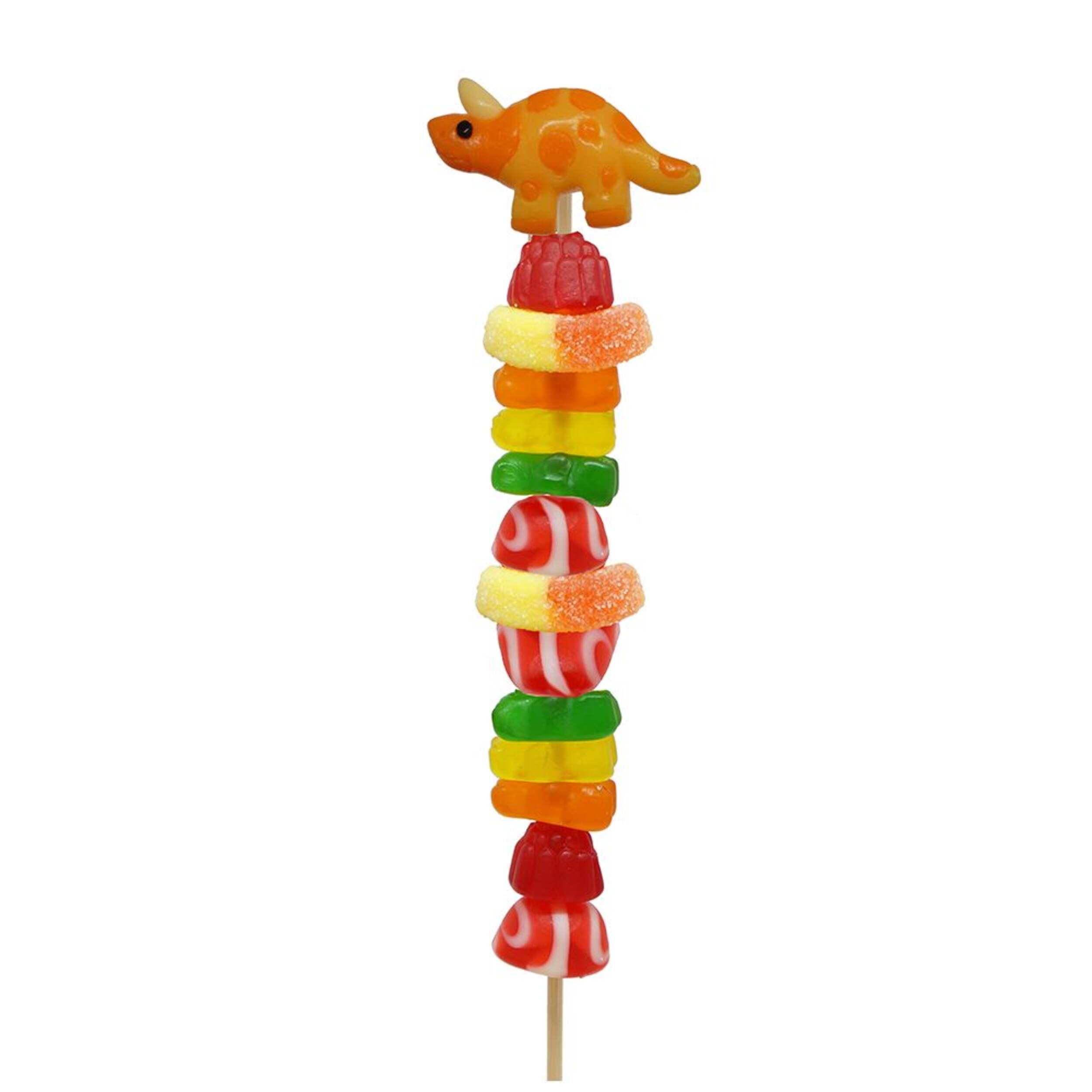 Delight your guests with Allison's Dinosaur Mix Candy Skewer, featuring assorted fruit flavours. These multi-coloured chewy candy skewers are perfect for birthdays or as party favours. Each skewer is adorned with hand-decorated dinosaur characters, making them great for loot bags and adding a whimsical, sweet treat to any celebration.