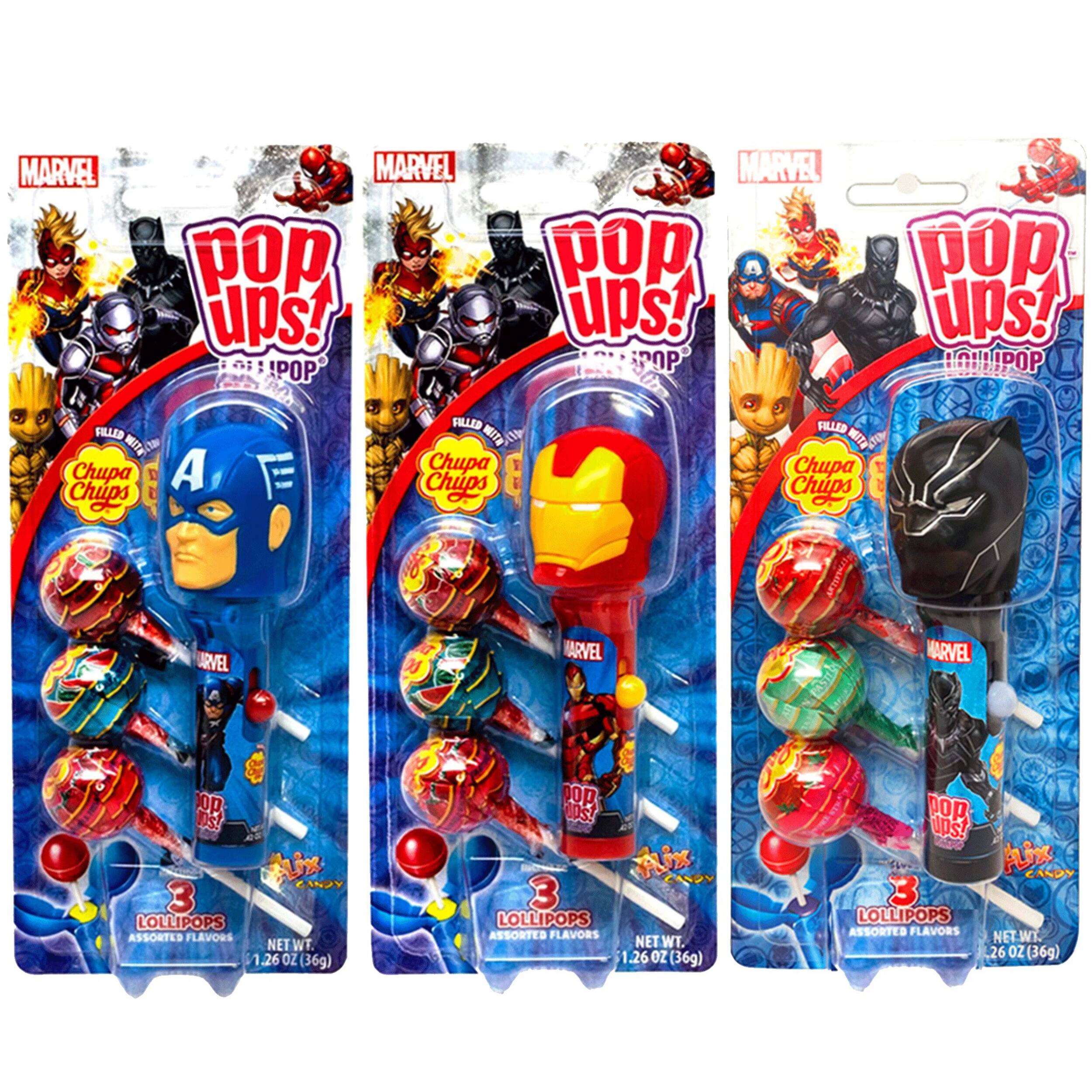 Pop Up Avenger Candy comes with one Avenger character lollipop holder