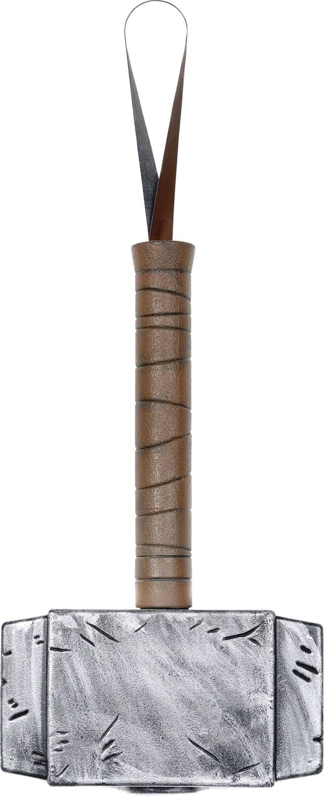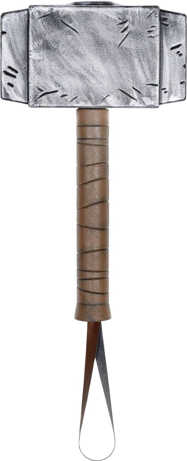 Marvel Thor Hammer features a steel-like beveled head and a banded leather-look handle finished by a vinyl strap
