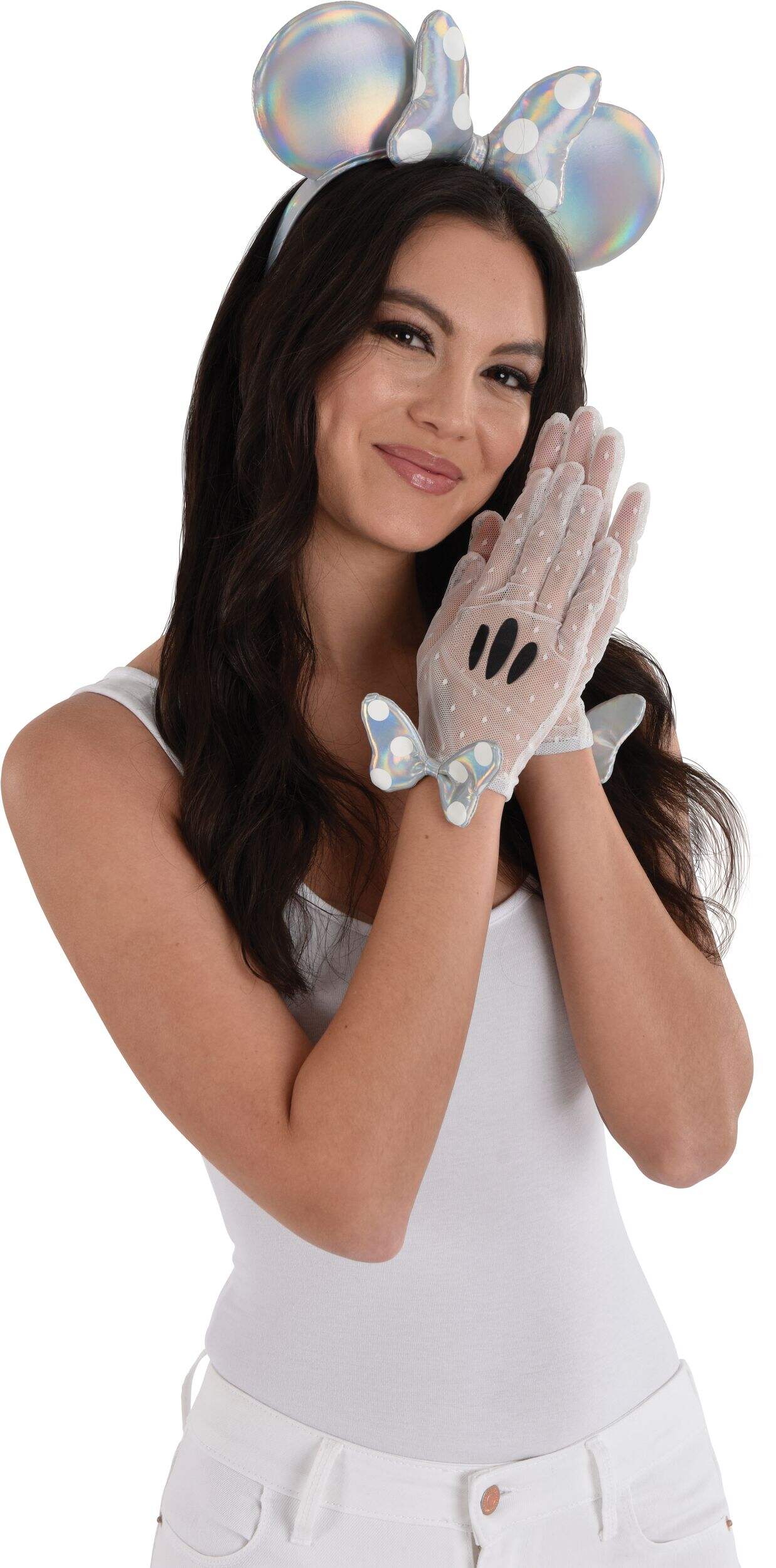 Show off your affection for Minnie Mouse with this dazzling Platinum Minnie Mouse Ears Headband. Featuring iridescent rainbow ears that sparkle like disco balls and the iconic polka dot bow, this headband is perfect for adding a touch of magic to any costume or outfit.