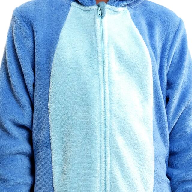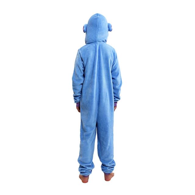 This out-of-this-world onesie features a blue jumpsuit with a blue hood featuring Stitch's face on it