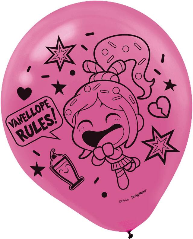 Blue and pink balloons are printed with Ralph saying "I'm Gonna Wreck it" or Vanellope saying "Vanellope Rules"