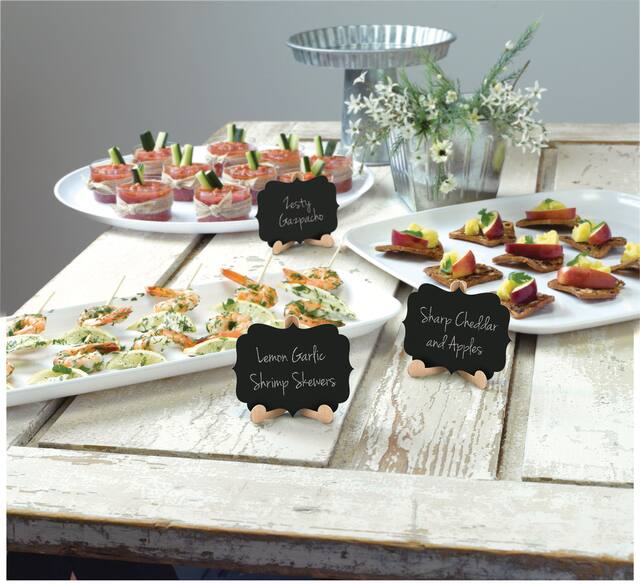 Our pack of customizable mini chalkboard easel signs are perfect for marking places at any celebration. The six scalloped wooden easels each feature a small chalkboard for writing names, messages or doodles - ideal for indicating seats at birthday parties, events, reunions or holidays. Guests of all ages will appreciate the old-school vibe these miniature chalkboards give to your next get-together.