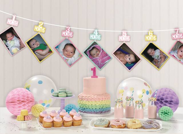 This photo garland is perfect for documenting your little one's first year and dressing up their first birthday bash. The garland features months from 1 to 7 months attached to a string where you can hang your baby's photos from each corresponding month, providing a stroll down memory lane for guests at the party. Help make your child's first birthday a truly memorable celebration with this simple but sweet décor addition.