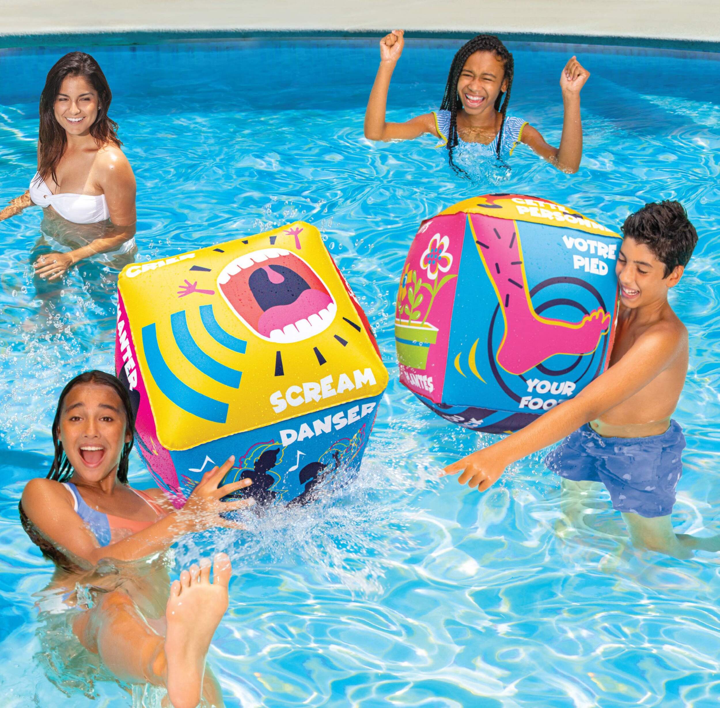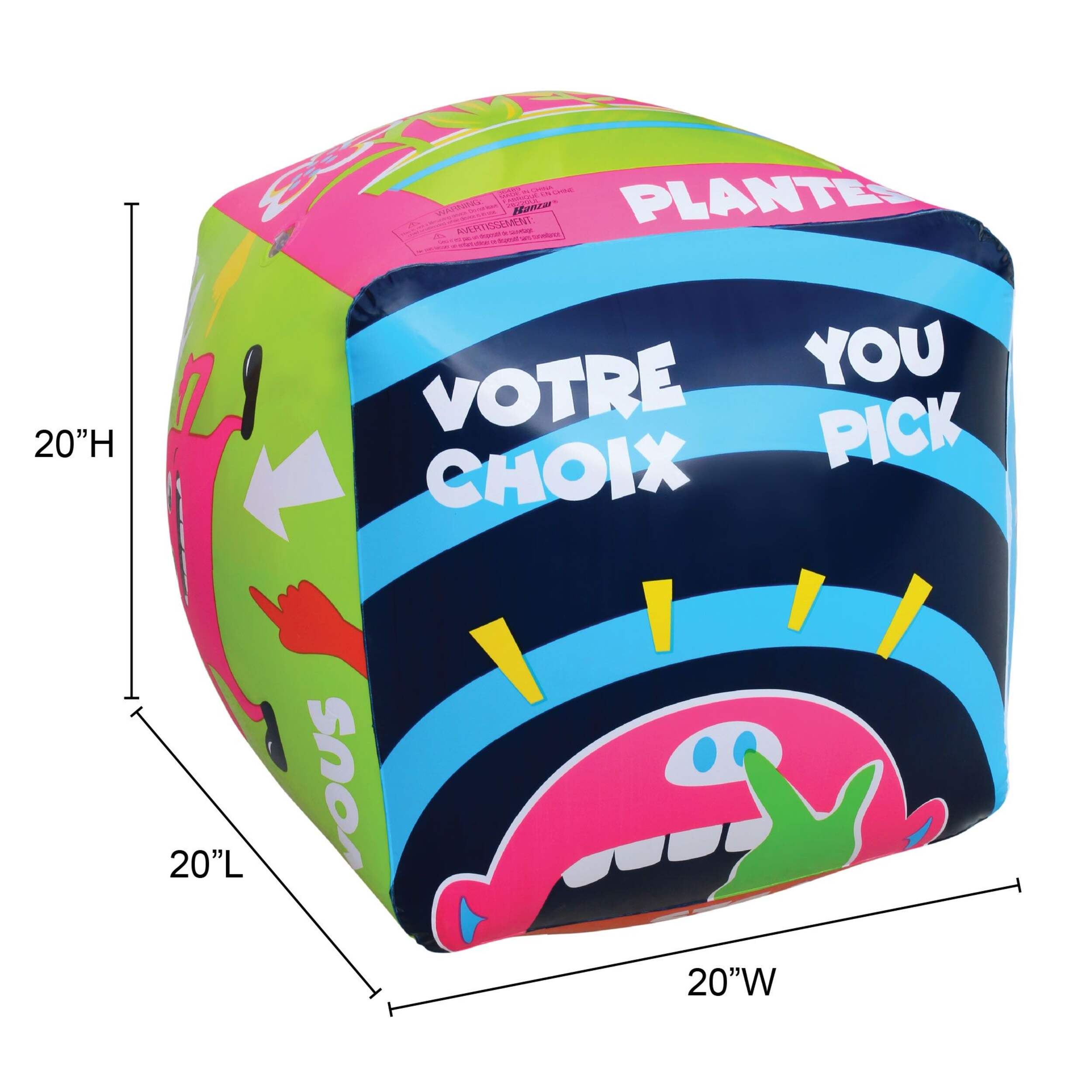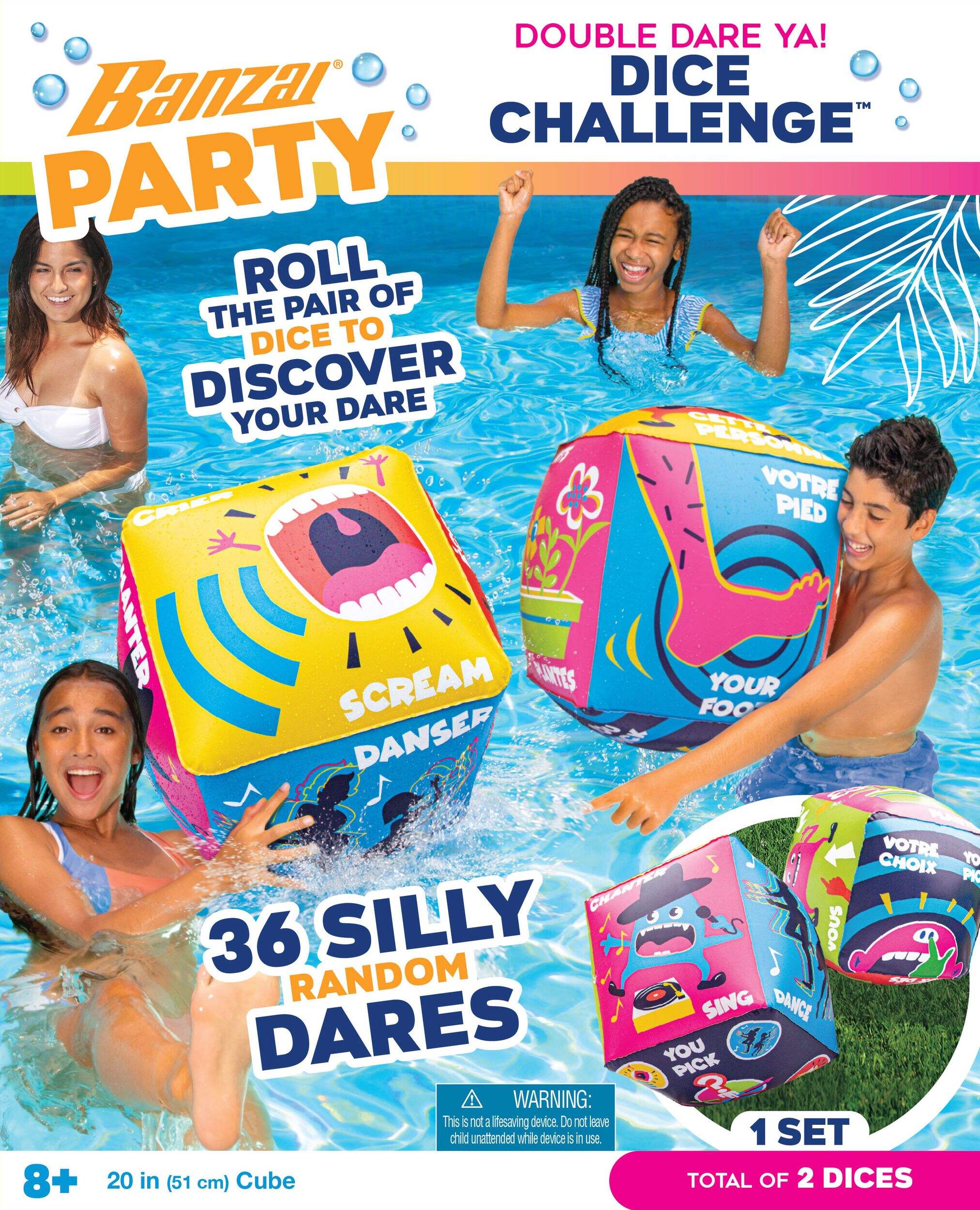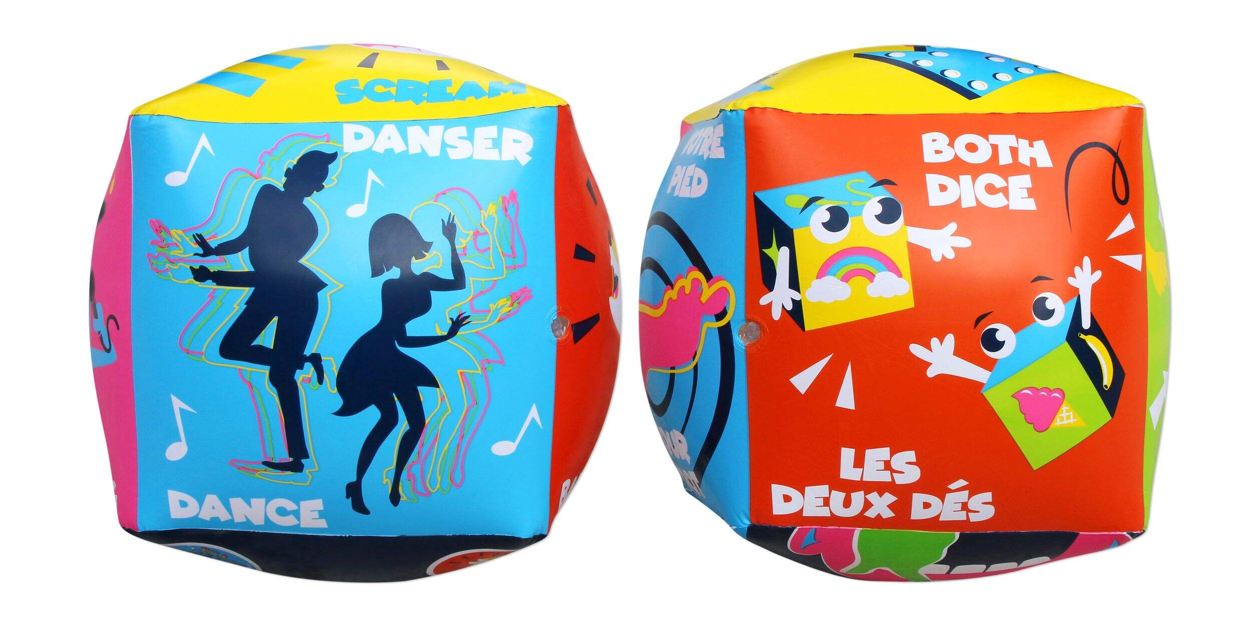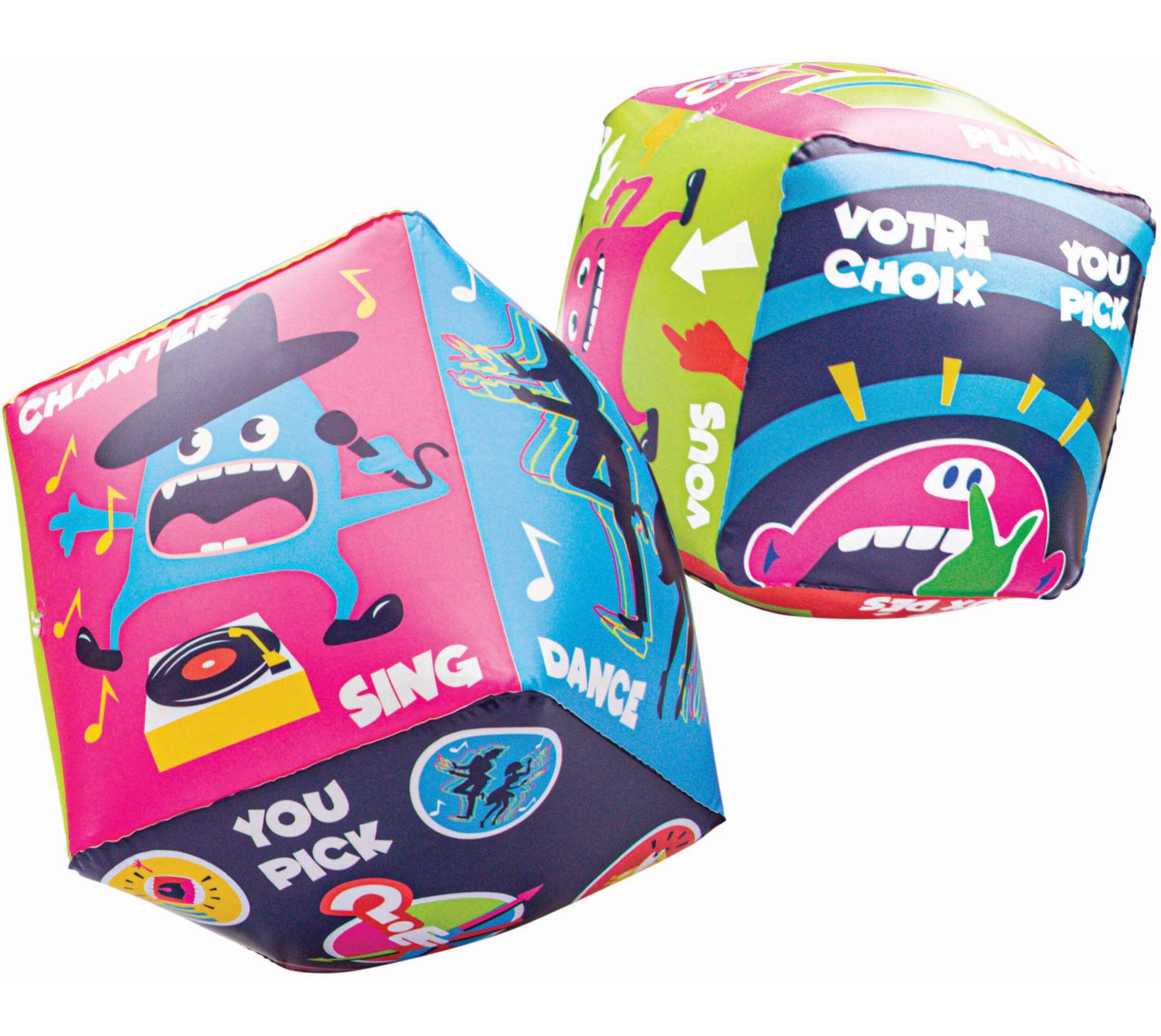Double Dare Ya! - Giant Dice Game comes with a pair of inflatable dice, each measuring 20 inches cube