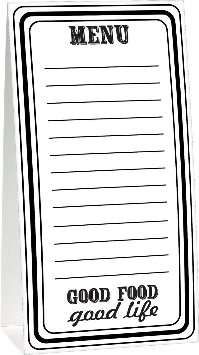 Includes: (6) 2 1/2" W x 7 1/2" L party picks, (4) 3" W x 4" L tag labels, and (2) 5" W x 9 3/4" L tent cards