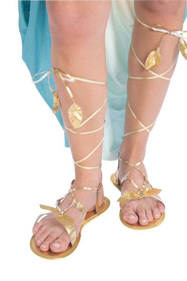 Featuring thin lace-up straps and gold leaf accents at the knees and toes