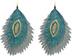 Large-but-lightweight peacock earrings feature an embroidered depiction of a peacock's plumage with small green and teal sequins for added shimmer