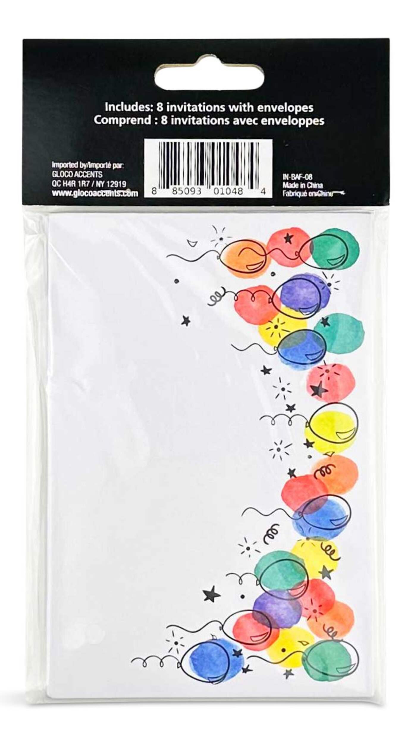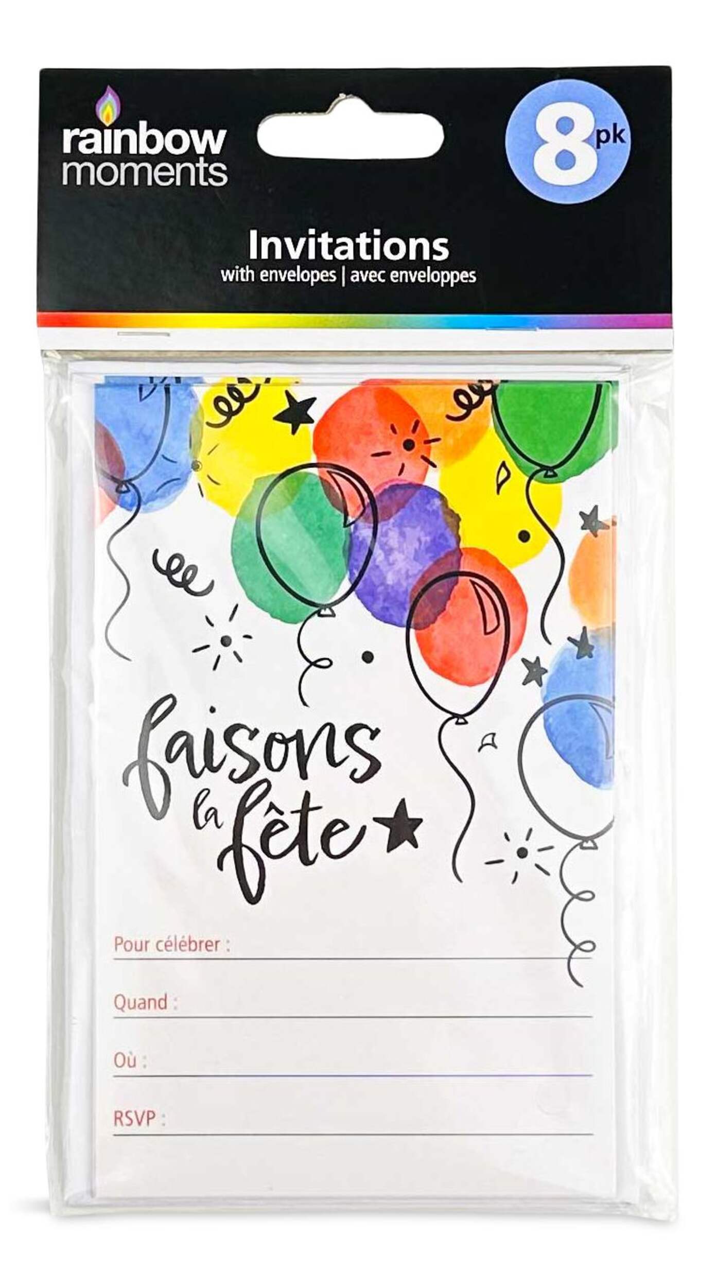 Celebrate in style with Faisons La Fete Birthday Invitations. These charming birthday party invitations feature a festive design with colourful balloons and a cheerful 'Faisons la fête' message in French, perfect for setting the tone for any birthday or party. Each set includes eight birthday party invitation cards and matching envelopes, making it easy to invite your guests.