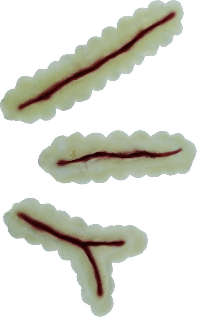 Attach them to the desired area using Spirit Gum, blend them seamlessly with makeup, and complete the look with fake blood (all sold separately)