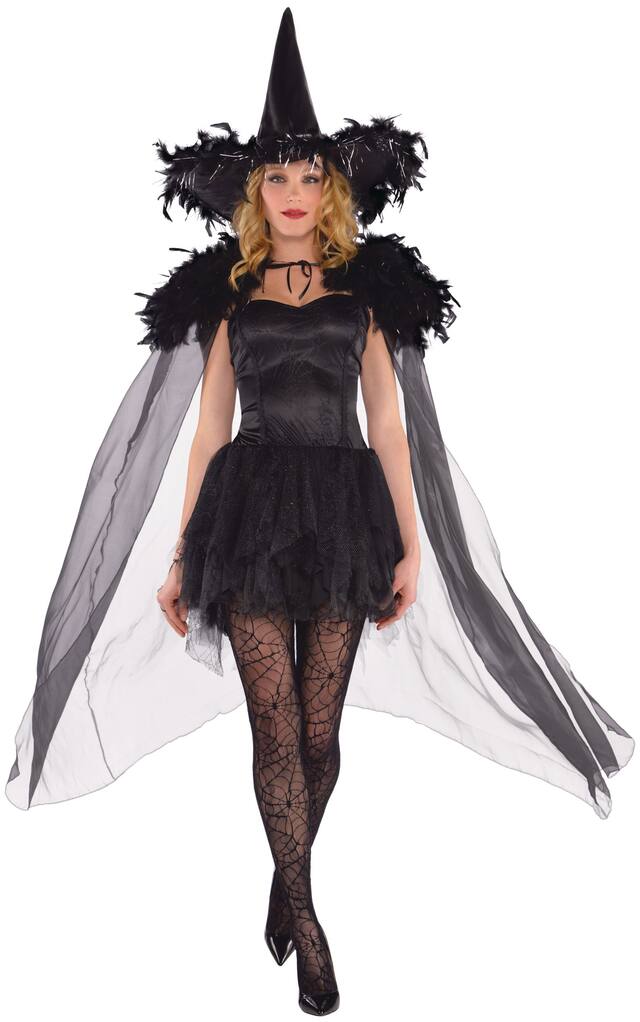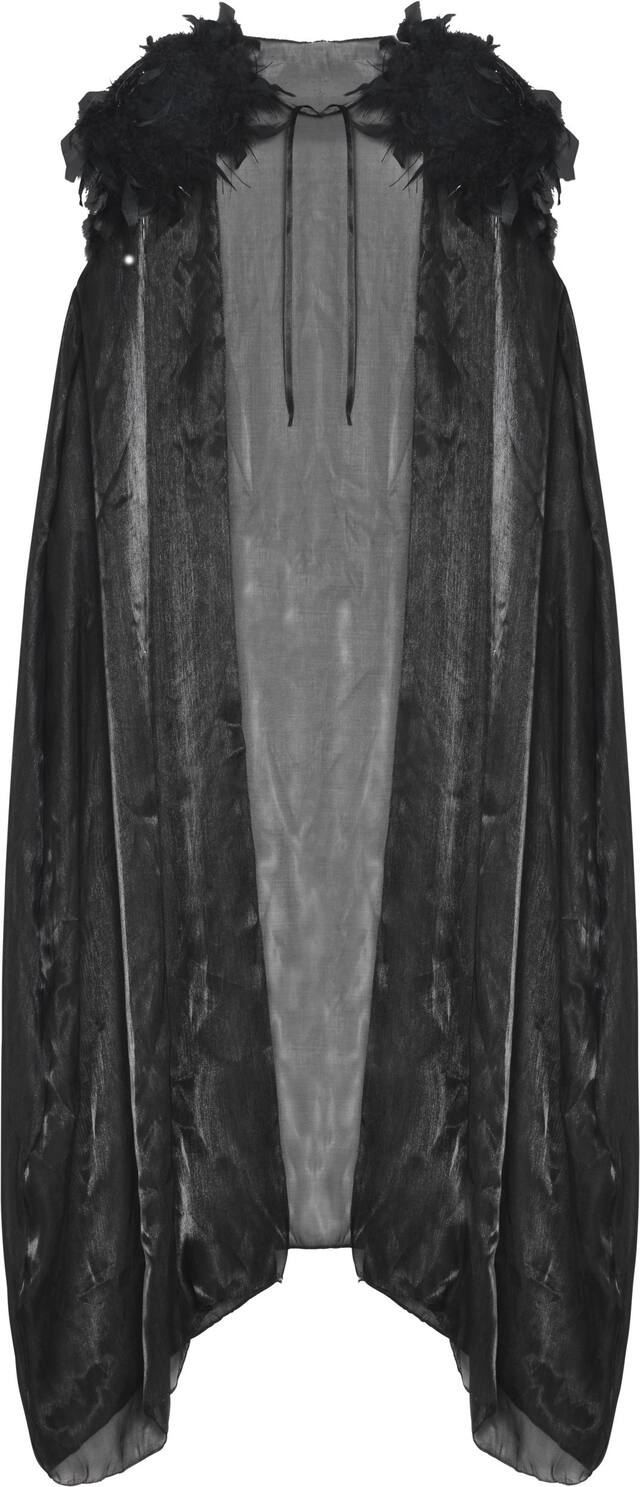 You may be interested in these similar products shown below.Adult Feather Witch Cape features flowing black organza topped with black feather epaulettes that adds luxury and standout design to your witch costume