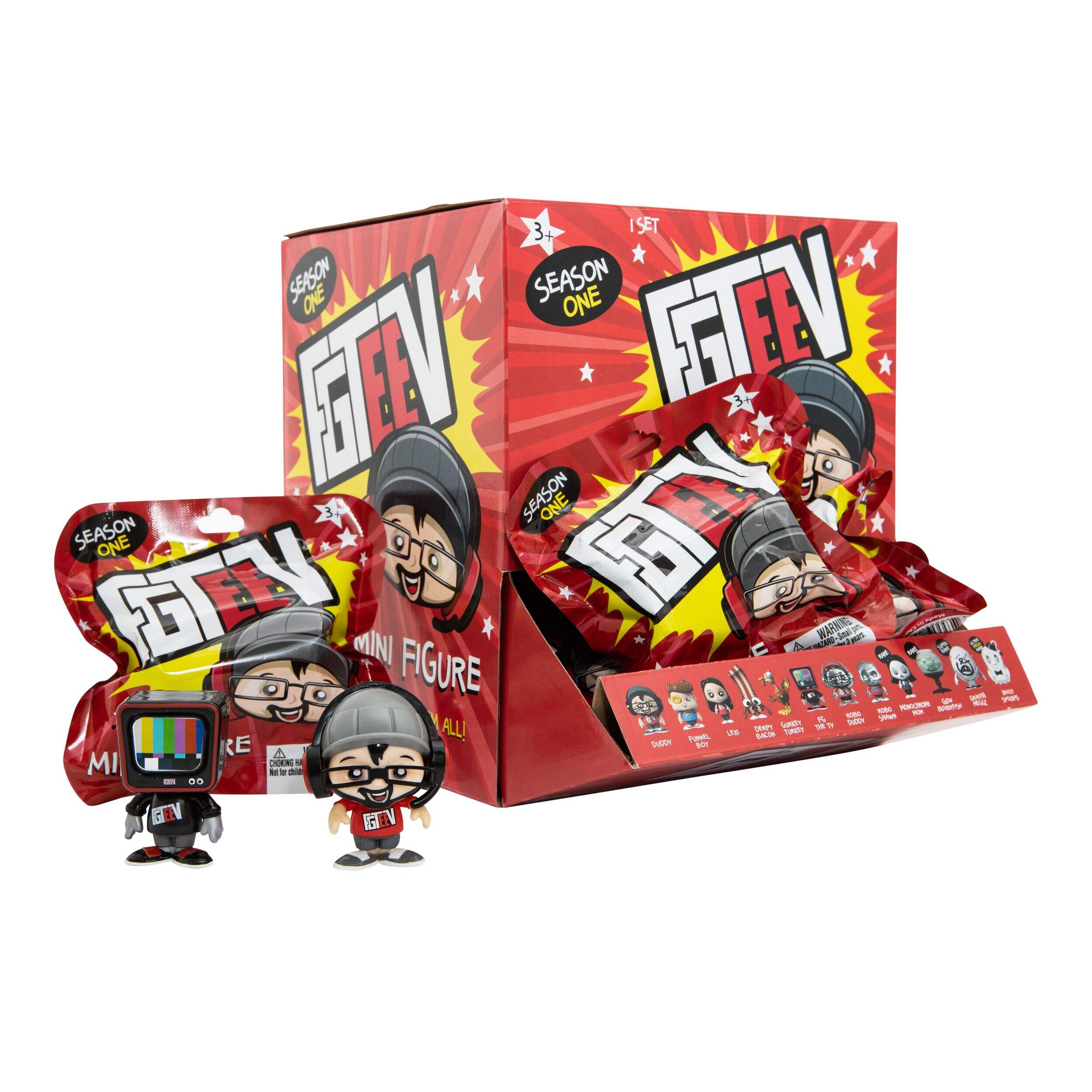 Collect them all including Duddy, FUNnel Boy, Derpy Bacon, Blobby Fish, Gurkey Turkey, and ultra-rare figures