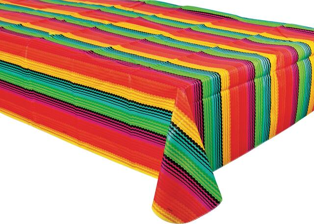 You may be interested in these similar products shown below.Fiesta Flannel-Backed Vinyl Table Cover features scalloped stripes and is perfect for your fiesta party or Cinco de Mayo party