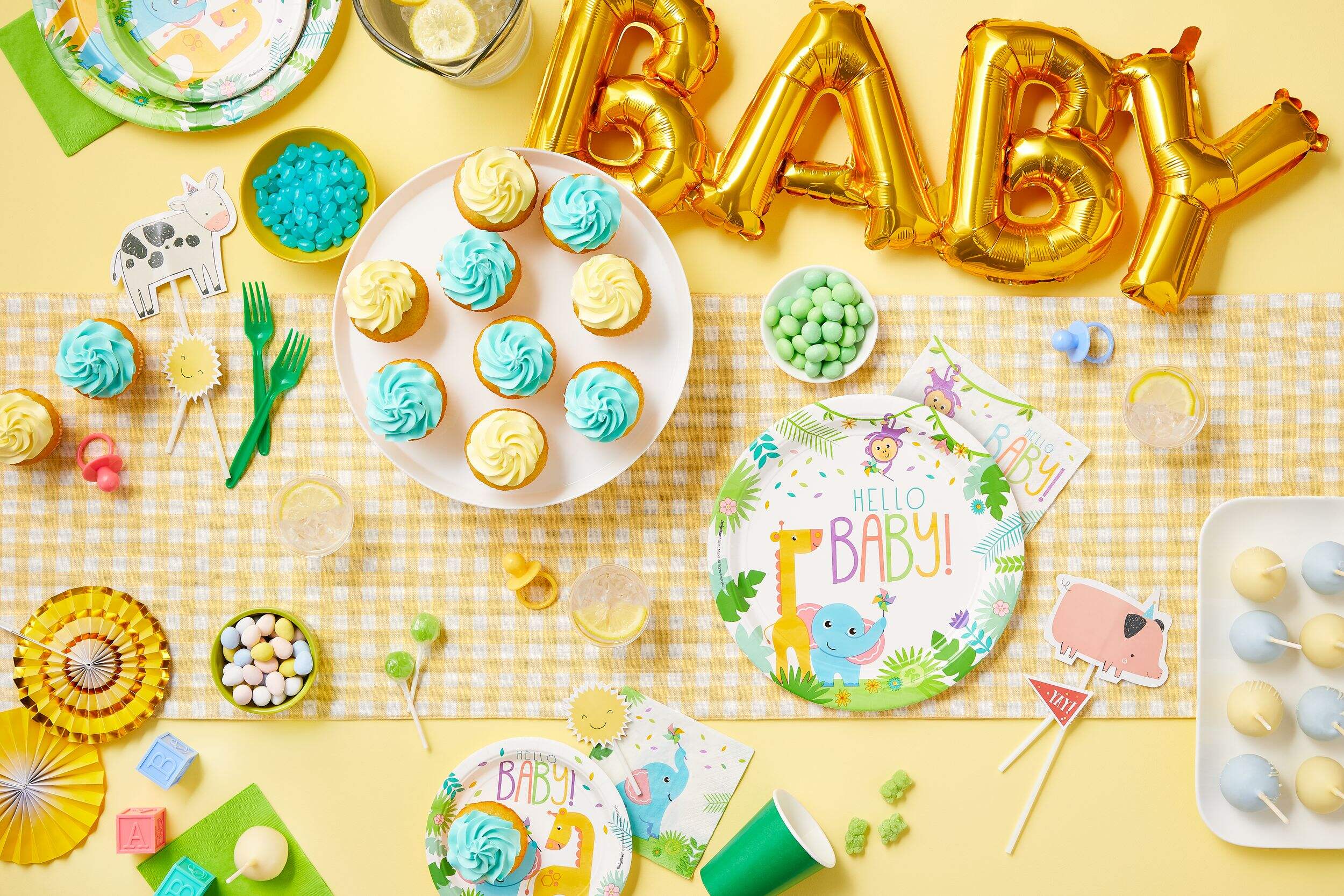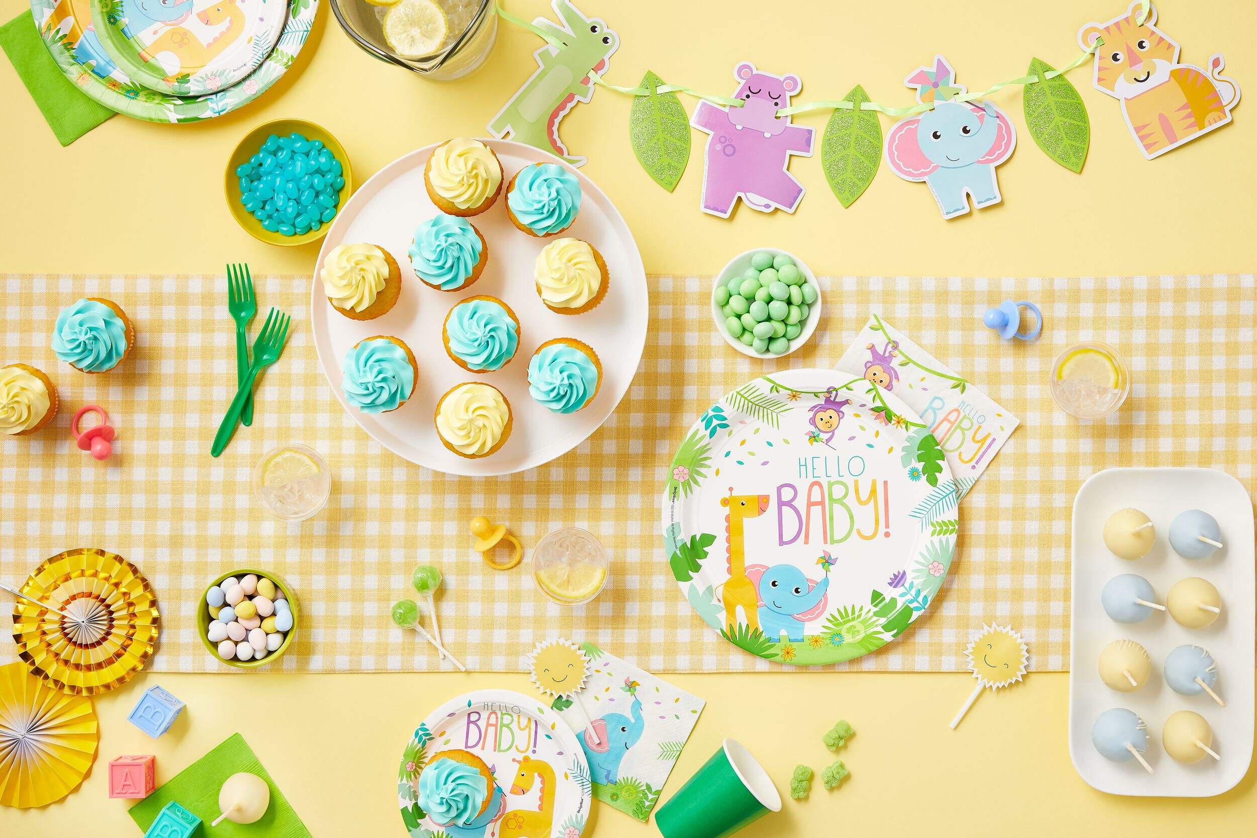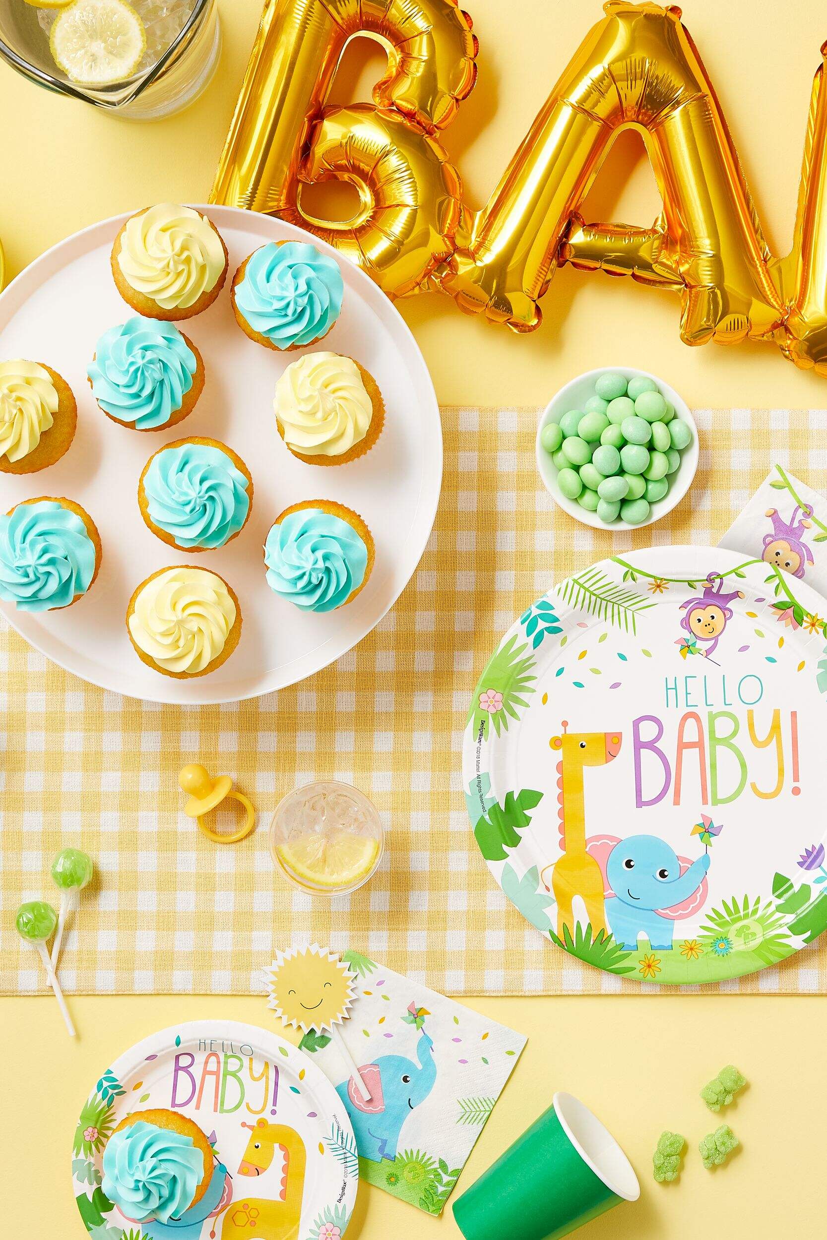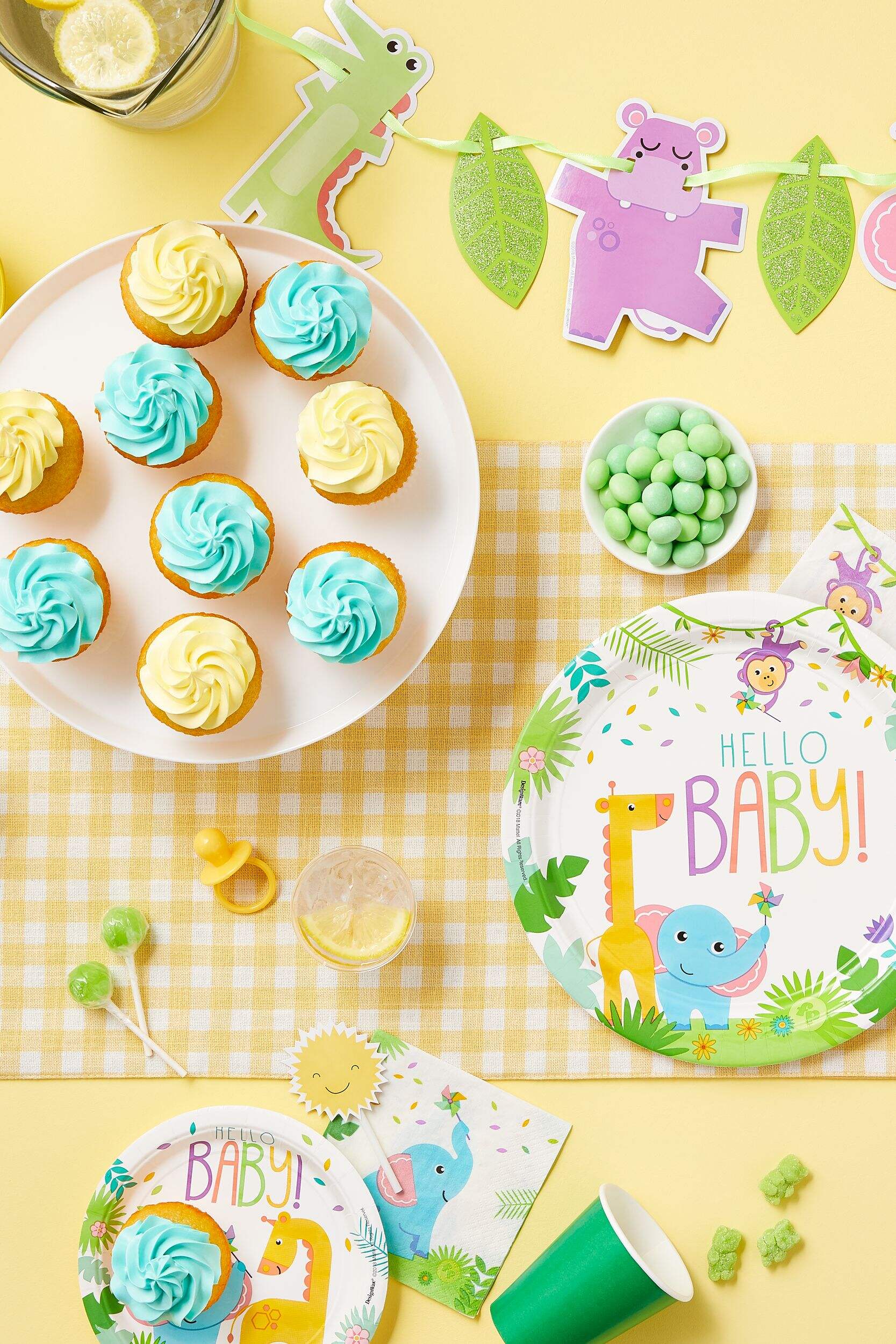 You may be interested in these similar products shown below.Fisher-Price Hello Baby Dinner Plates feature an elephant, giraffe and monkey in a jungle of greenery below the headline "Hello Baby"