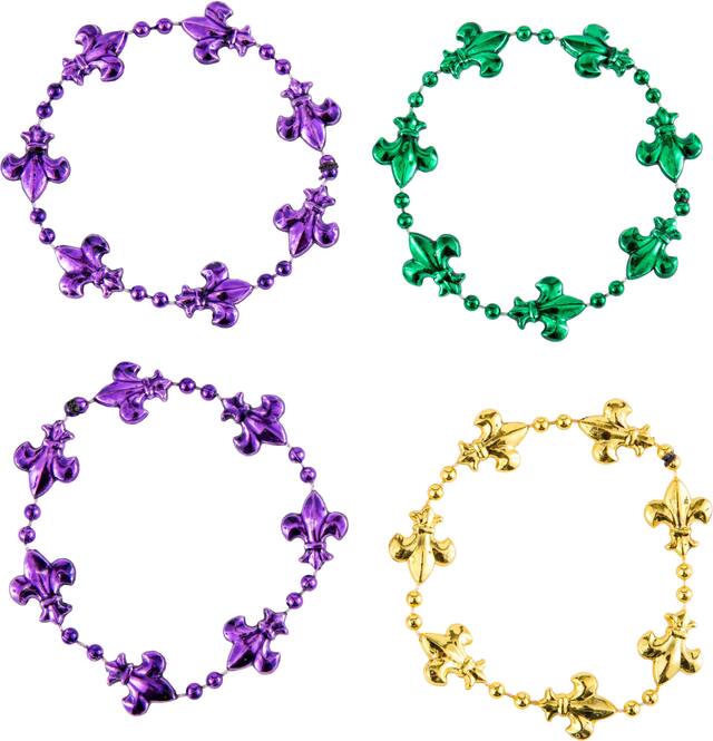 You may be interested in these similar products shown below.Fleur-de-Lis Mardi Gras Bead Bracelets are shaped like fleurs-de-lis and add a French touch to your outfit