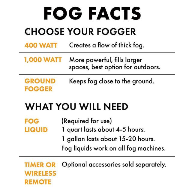 You may be interested in these similar products shown below.Easily set your fog machine for hours of hands-free operation with the Fog Machine Timer Halloween Decoration. This remote fog machine timer plugs into the back of most standard fog machines or ground foggers, offering simple and intuitive controls for fog production. With the machine, it's simple to customize both burst duration and intervals of fog production (for example, an 8-second burst of fog every 30 seconds). This fogger timer also lets you override your automated settings and make an immediate switch to manual control. It includes AC 120V 60Hz fog machine compatibility and an automatic burst duration from 0.5 to 10 seconds. The interval settings can vary between 10 and 200 seconds. For ease of operation, the fog timer exhibits both timed and manual modes of operation. Additionally, it includes ETL listed 5 feet power cord.
